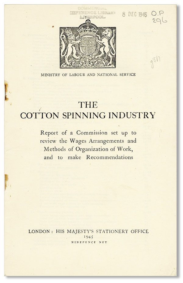 The Cotton Spinning Industry. Report of a Commission set up to review the Wages Arrangements and Methods of Organization of Work, and to make Recommendations