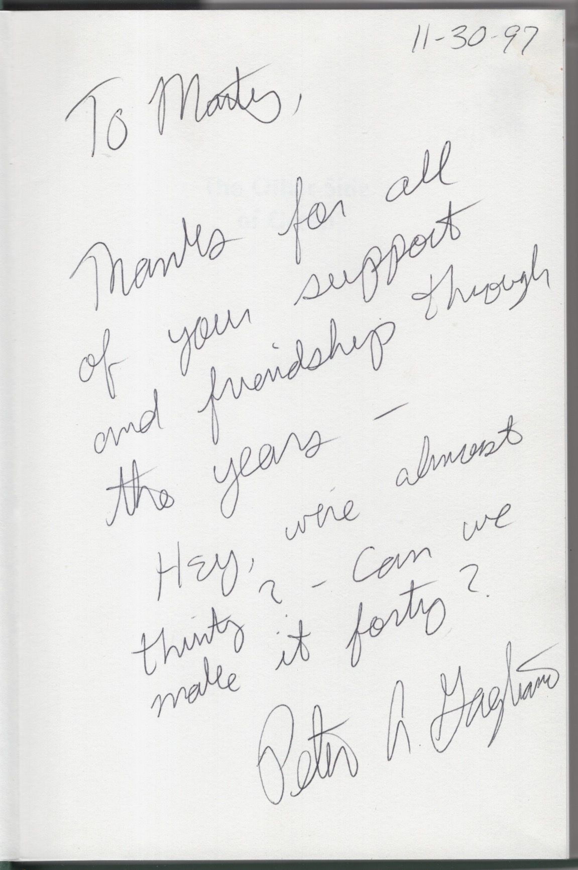 New York: Rivercross Publishing, Inc, 1997. Hardcover. Very Good/Very Good. Hardcover. Signed and inscribed by the author, dated 11/30/97. A fictitious book about a professional gambler and con artist that likes to make bets on the golf course - until he falls in love. The author's first novel. Green paper covered boards with gilt title to spine. In green dust jacket with dark green title to spine and front panels. Minor dampstaining to top edges of jacket. Minor wear to edges of jacket. 202 pages. LIT/072718.