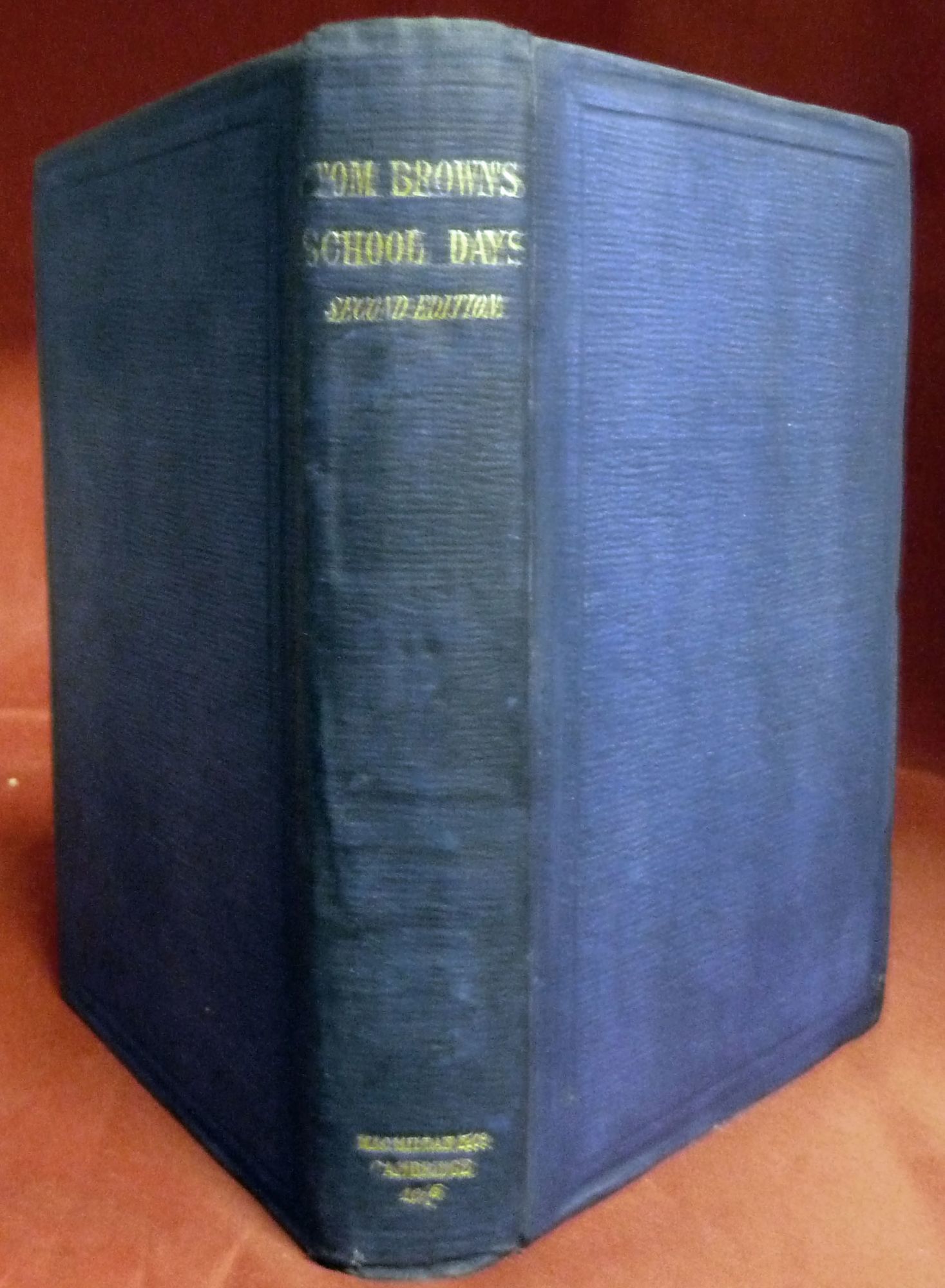 Cambridge: Macmillan & Co, 1857. Second edition. Hardcover. Orig. navy cloth, backstrip lettered in gilt. Very good. 420 pages. 19.5 x 13 cm. An historic novel of boarding school days by an English lawyer, judge, politician and author. He is most famous for this effort, a semi-autobiographical work set at Rugby School, which Hughes had attended. Later, he founded a settlement in America??"Rugby, Tennessee??"which was designed as an experiment in? utopian? living for the younger sons of the English gentry. 24 pages of adverts at rear. Small bookseller label of W. Hunt of Ipswitch. Firm, clean copy. SADLEIR 1234. WOLFF 3331.