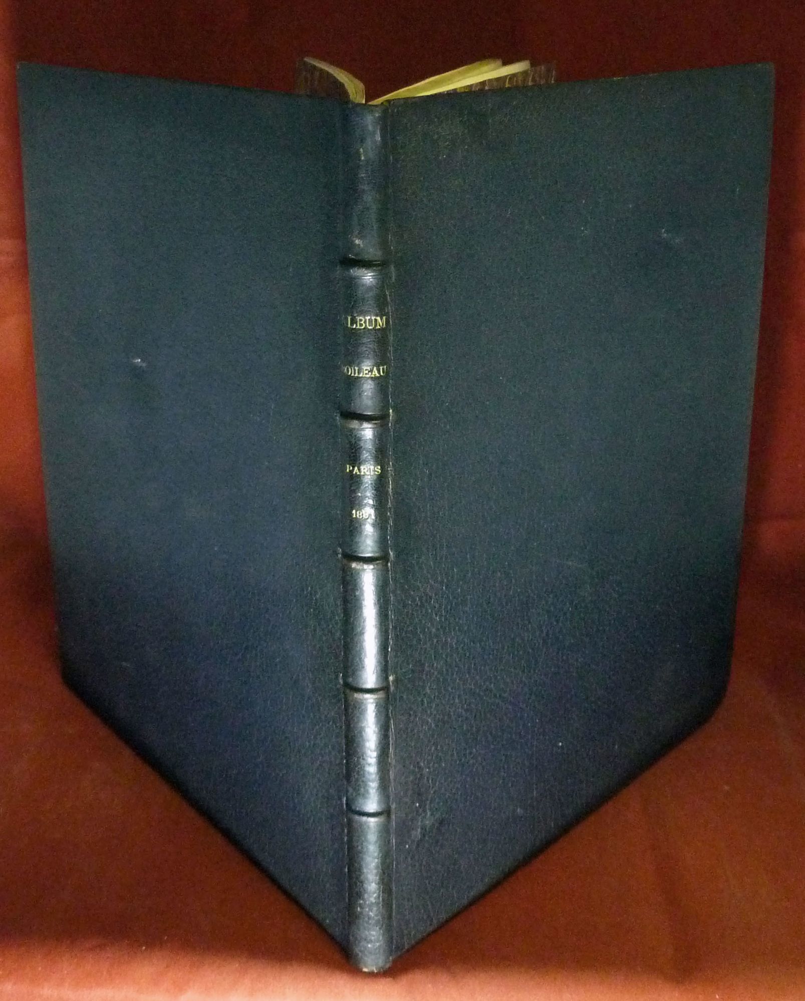 Paris: Np, 1891. leather_bound. Full black morocco. Aeg. Near fine. Unpaginated. 32.5 x 25 cm. Original watercolor title page by J. Ostolle, text lettered in gilt. Twenty three full page etchings with lettered tissue guards by French academic painters. Frontispiece by Edmond Lechevallier-Chevignard with additional full page contributions by Alexander Cabanel, Leon Bonnat, Charles De Lort, Francoise Flameng, Jean-Leon Gerome, Jehan Georges Vibert et al. Leon Bonnat won a medal of honour in Paris in 1869, going on to become one of the leading artists of his day. Bonnat went on to win the Grand Officer of the Légion d'honneur and became a professor at the Ecole des Beaux Arts in 1882. OCLC data:Boileau: ce volume contient de nombreuses reproductions de la Bibliothèque nationale. Author: Morillot, Paul. Paris : Lecène, Oudin et cie, 1891. Bound by P. Ruban, raised bands, spine panels lettered in gilt, inner dentelles, marbled endpapers, slight nicks to corners.