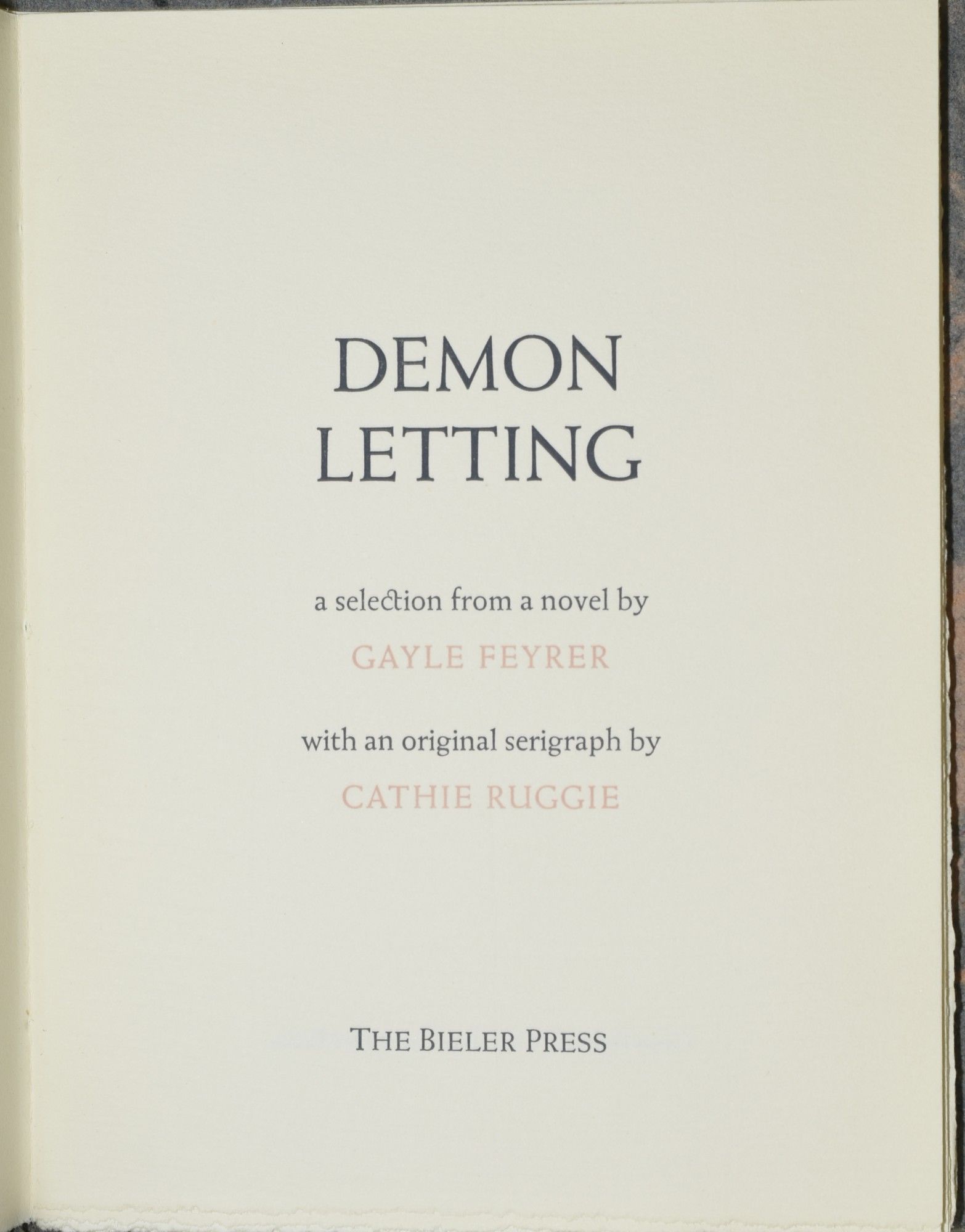 DEMON LETTING. A SELECTION FROM A NOVEL BY GAYLE REYRER WITH AN ORIGINAL SERIGRAPH BY CATHIE RUGGIE
