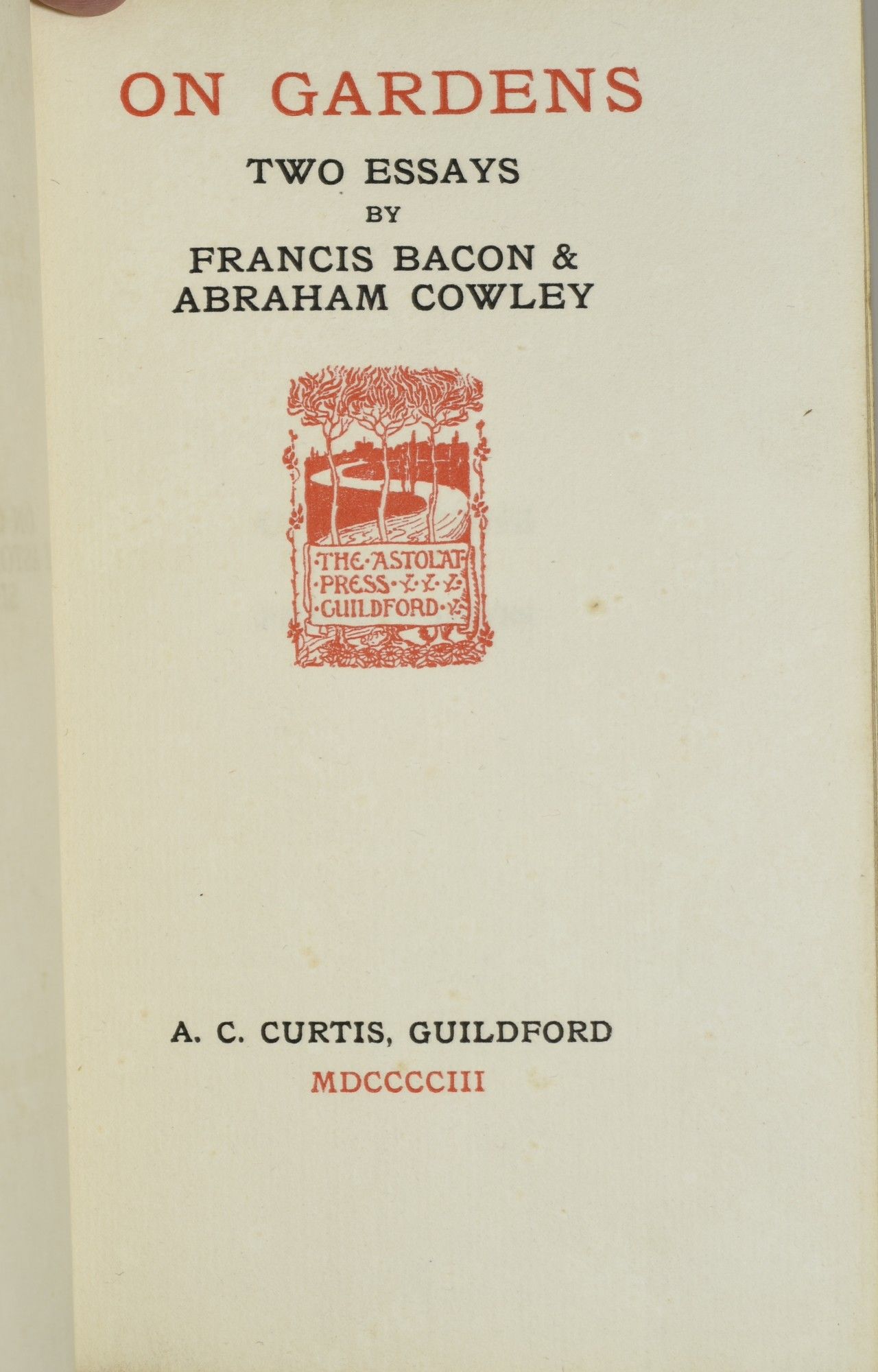 ON GARDENS. TWO ESSAYS [THE ASTOLAT OAKLEAF SERIES]