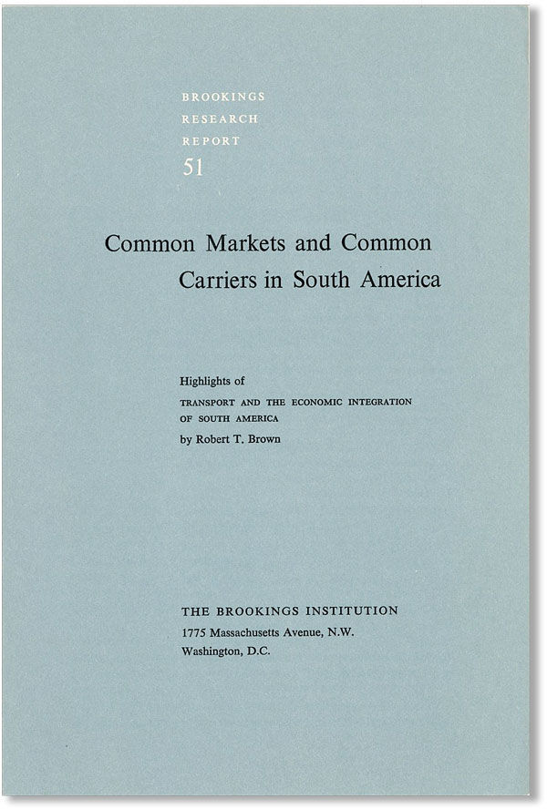 Washington DC: Brookings Institution, 1966. First Edition. Octavo (23cm.); publisher's blue-grey staplebound wrappers; 9pp. Near Fine. Brookings Research Institute Report no. 51.