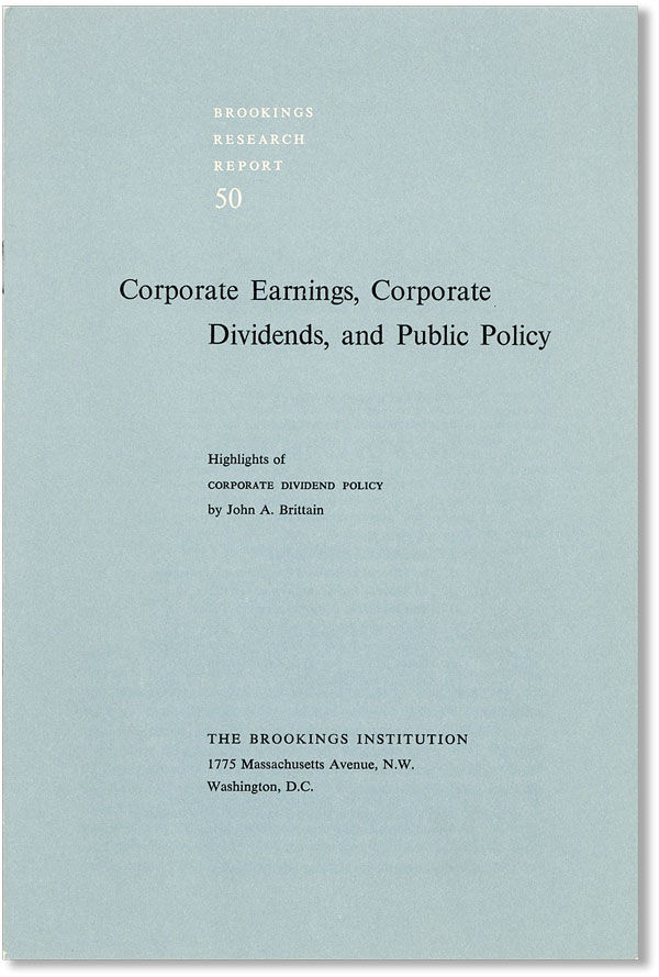 Washington DC: Brookings Institution, 1966. First Edition. Octavo (23cm.); publisher's blue-grey staplebound wrappers; 9pp.; graphs in text. Near Fine. Brookings Research Institute Report no. 50.