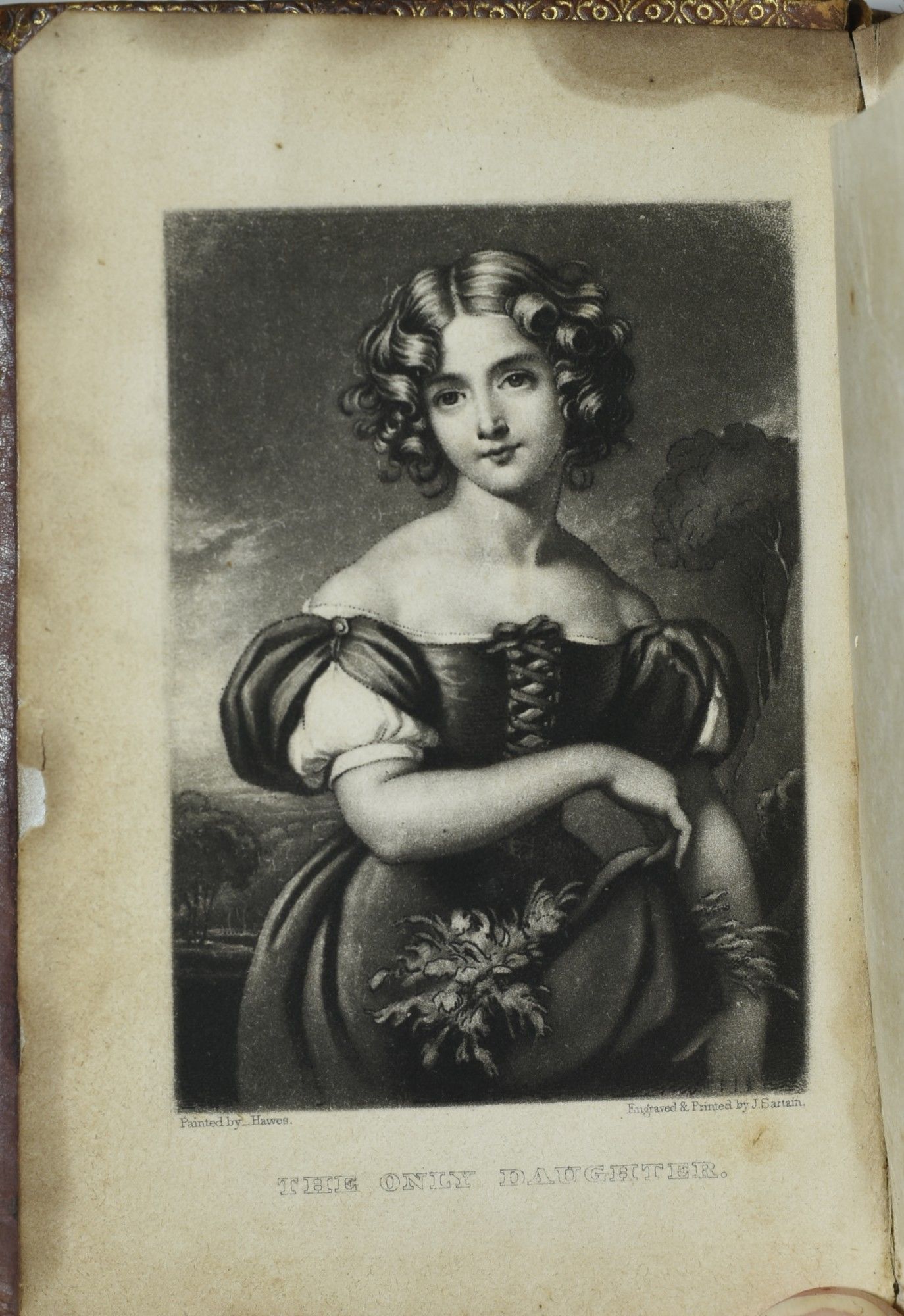 Philadelphia: Thomas T. Ash, 1835. Full Leather. Very Good binding. A gift book from 1835. The Bouquet, or Spirit of the English Annuals. Frontispiece. Lacking endpapers; scattered foxing; personal inscription on the recto of the frontispiece. Embossed calf, with a chipped leather label on the spine. Gilt tooled turn ins. All edges gilt. Ribbon marker laid in. Uncommon, we locate only one copy on OCLC. Faxon 82a, p. 114. American Imprints 30593. (Faxon 82a, p. 114. Rinderknecht, American Imprints, 30593). Very Good binding.