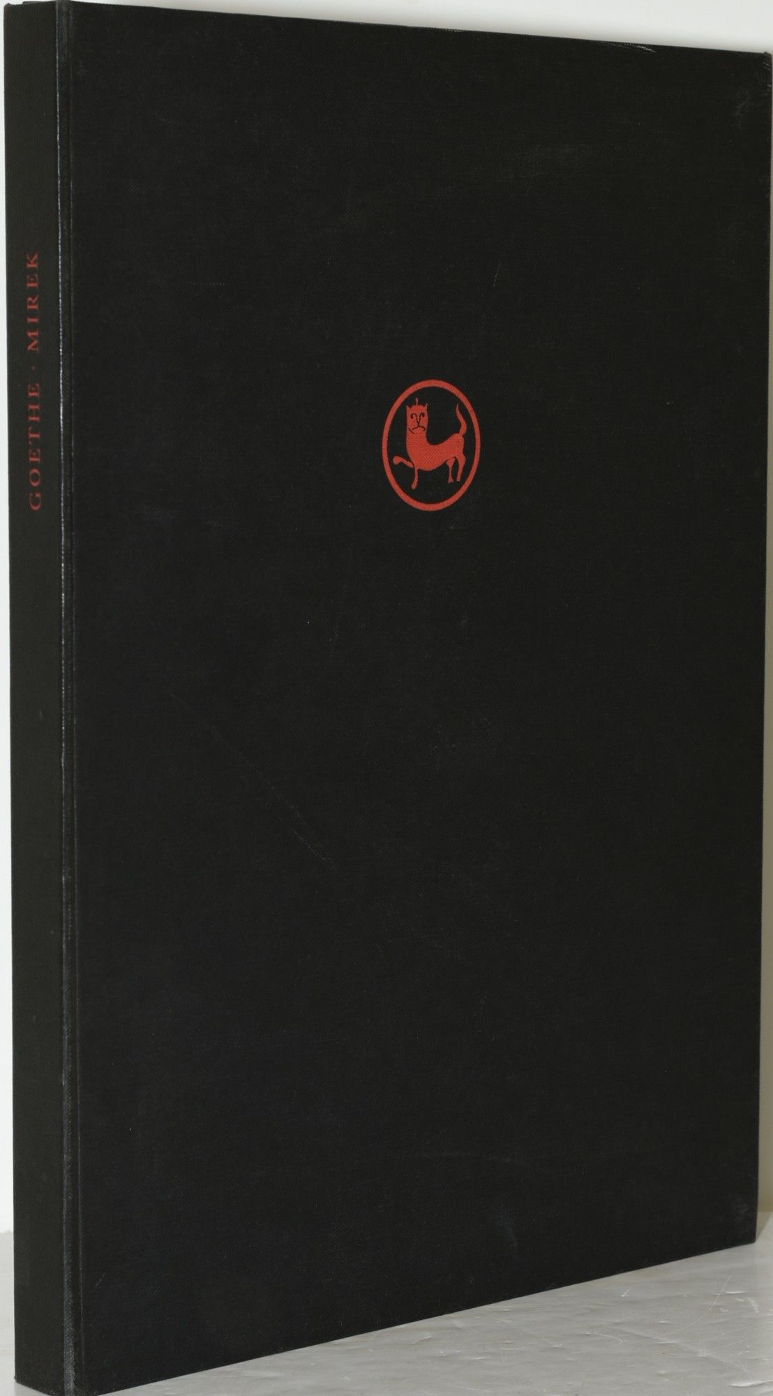 Verona: Editiones Domonicae di Franco Riva, 1974. Letterpress printed on handmade paper by Franco Riva, with three half page etchings signed by Mirek and printed above text. The first ten copies of this edition with the Mirek etchings were issued with an additional suite of the three engravings -- "i primi dieci con la suite delle acqueforti"without text. This is no. 10 of the numbered editions. Leaves loose as issued, and laid into a black paper-covered box with titling and decoration stamped in red.