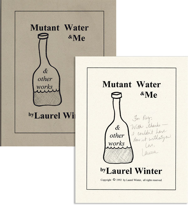 N.p.: Laurel Winter, 1992. First Edition. Quarto (28cm.); publisher's pictorial card wrappers and textblock loose as issued in tinted acetate wrappers; [2],14pp. Light wear, else Near Fine. Inscribed and signed to the late Minnesota poet John Rezmerski on title page. Short self-published poetry collection by a Montanan. Not in OCLC as of October, 2018.