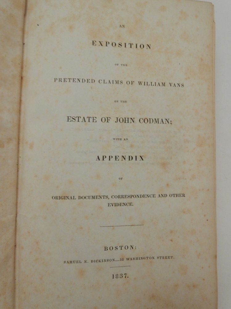 An Exposition of the Pretended Claims of William Vans on the Estate of John Codman [ Volume 1 ONLY ]