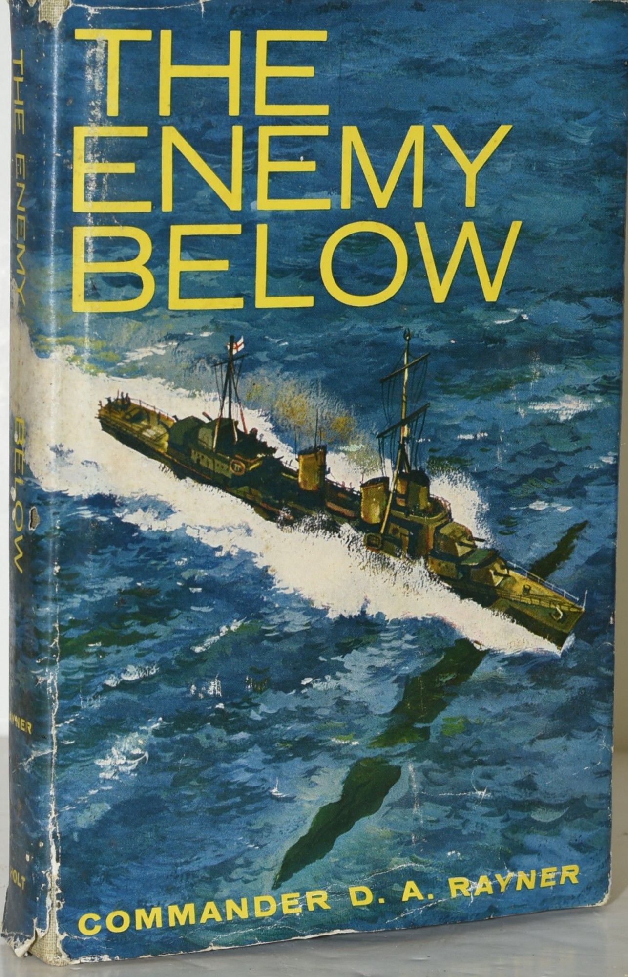 New York: Henry Holt and Company, 1957. First Edition. Hard Cover. Good binding/Good dust jacket. Stated First Edition of Commander D. A. Rayner's historical novel, The Enemy Below. Denys Rayner was a Royal Navy Officer who commanded throughout the Battle of the Atlantic, experiencing firsthand the submarine warfare on which this book is centered. Binding is cocked, with minor spotting to the edges of the textblock. Good dustjacket, with creasing and tears to the front, spots of loss to the spine, and front flap priceclipped. Now protected in a mylar cover. Good binding / Good dust jacket.