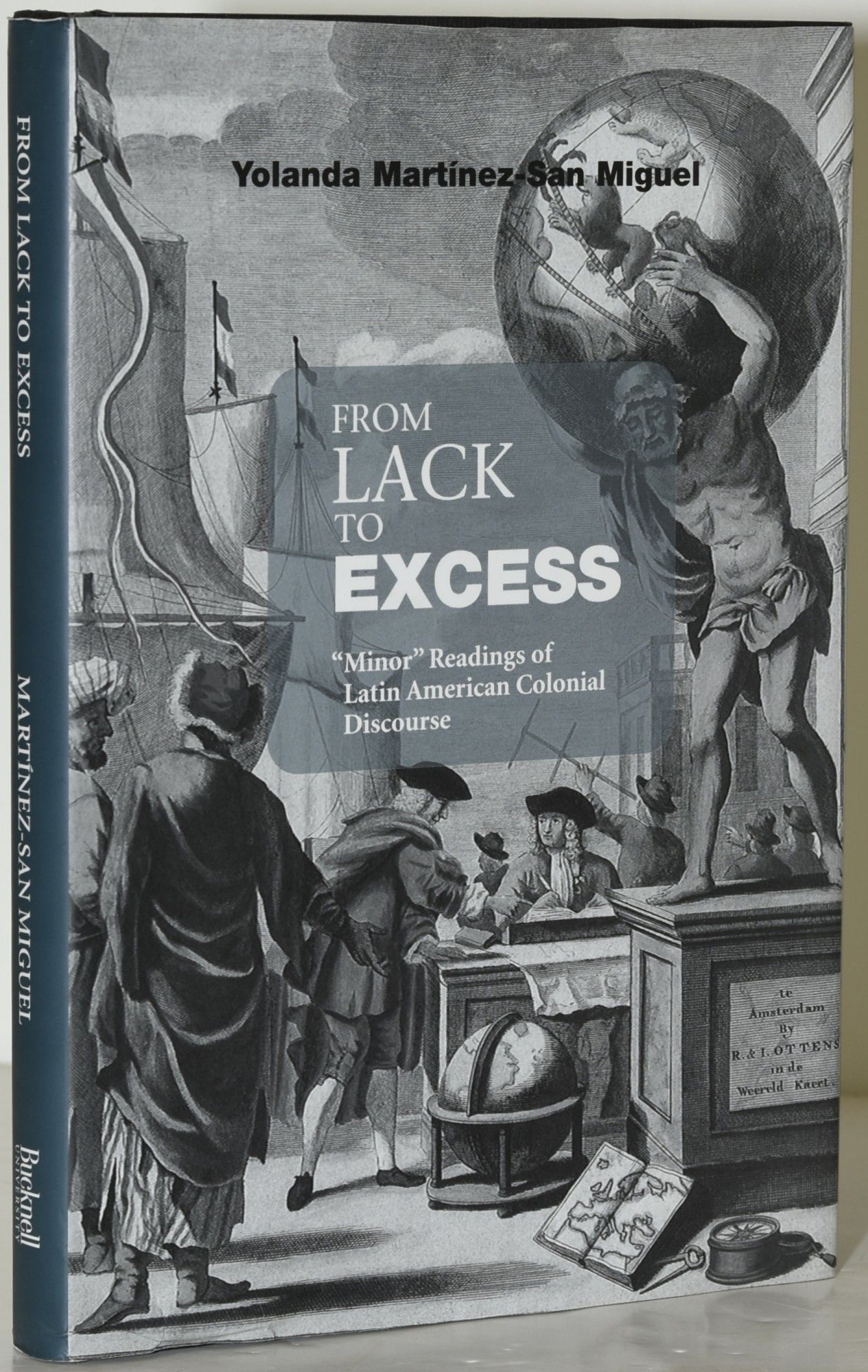 Lewisburg: Bucknell University Press, 2008. Hard Cover. Near Fine binding/Very Good dust jacket. Yolanda Martinez-San Miguel's From Lack to Excess, "Minor" Readings of Latin American Colonial Discourse. With no marks of any kind. Very Good dustjacket, with some bumping or creasing to the top and bottom edges. Near Fine binding / Very Good dust jacket.