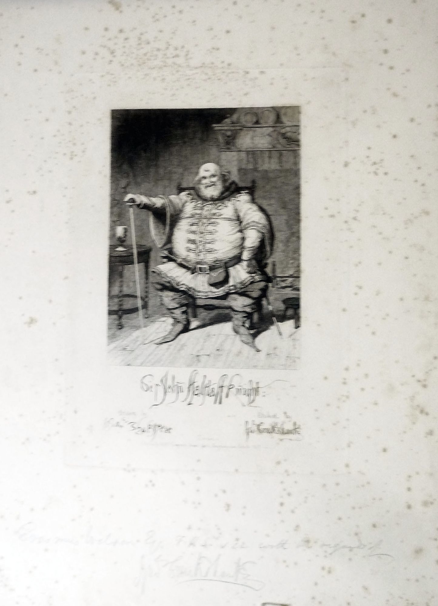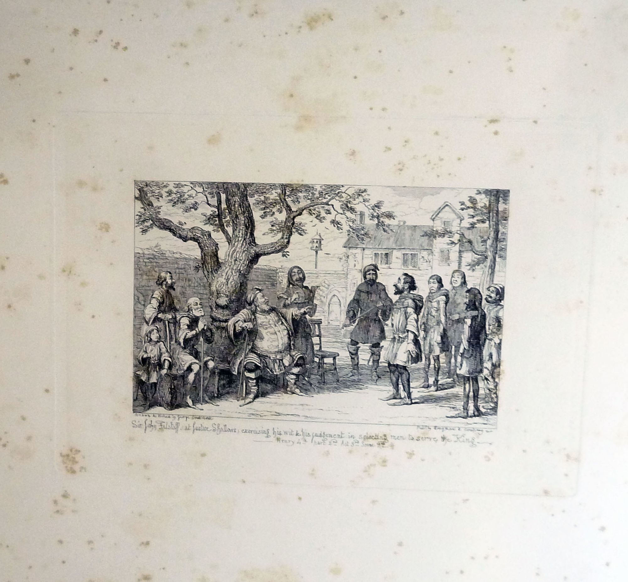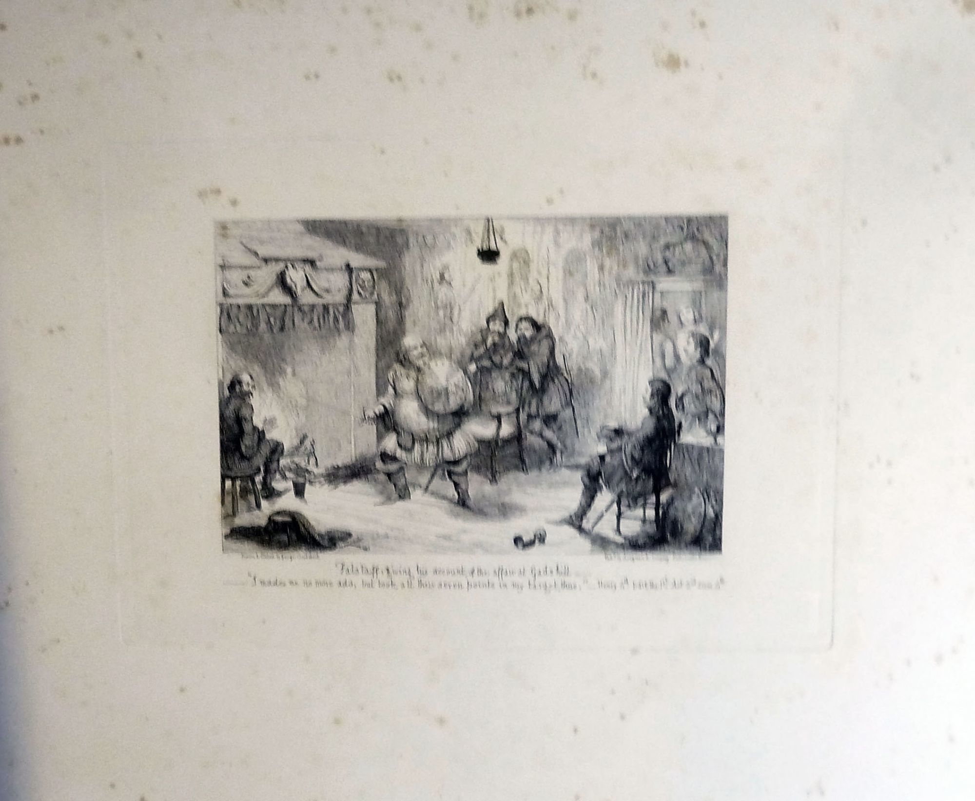London: Longman, Brown, Green, Longmans and Roberts, 1857. Stiff Wraps. Orig. stiff wrappers. Very good. First plate of the Series: with image of Sir John Falstaff Knight seated, "Drawn by William Shakespeare, Etched by George Cruikshank," and inscribed in pencil to "Erasmus Wilson Esq. F.R.S.with the regards of George Cruikshank," with his florid signature below the plate impression. All plates are 43.5 x 30 cm., printed on heavy stock. The first picture size is 16.5 x 12 cm. and presented vertically. The following eleven plates are horizontal, 17.5 x 11.5 cm. and captioned: Henry 4th with Scene and Act noted. Plates are generally clean with foxing in the margins. All eleven subsequent plates bear "Drawn & Etched by George Cruikshank......Pub. by Longman & Company.