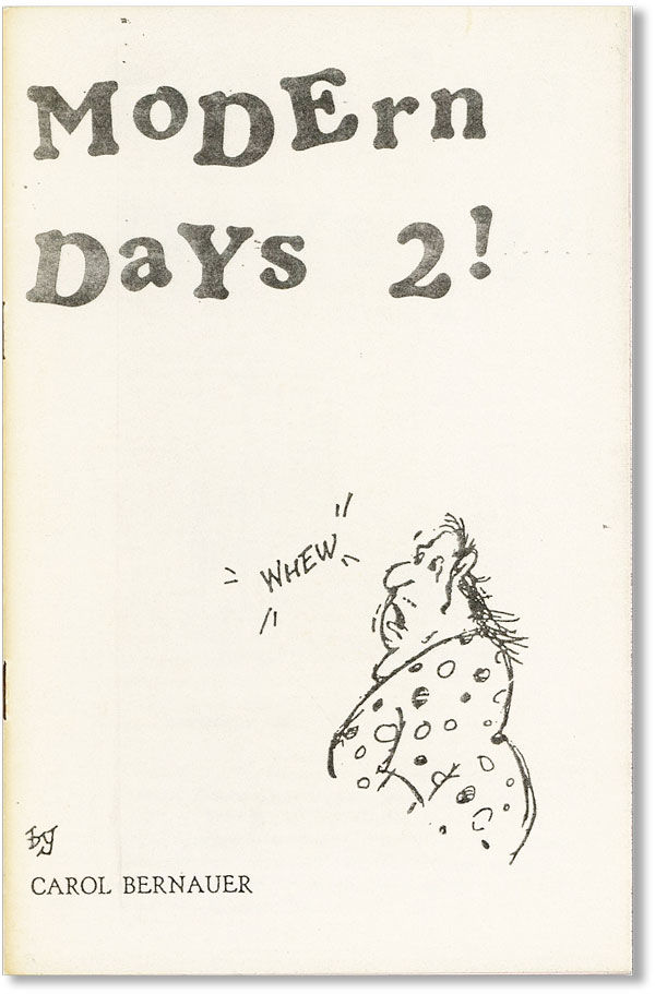 Richford, VT: Samisdat, 1984. First Edition. Octavo (21.5cm.); publisher's white pictorial staplebound card wrappers; 11pp.; illus. throughout, text printed on pink stock. Minor toning to spine edge, else Very Good and sound. Poetry collection by a Cleveland native.
