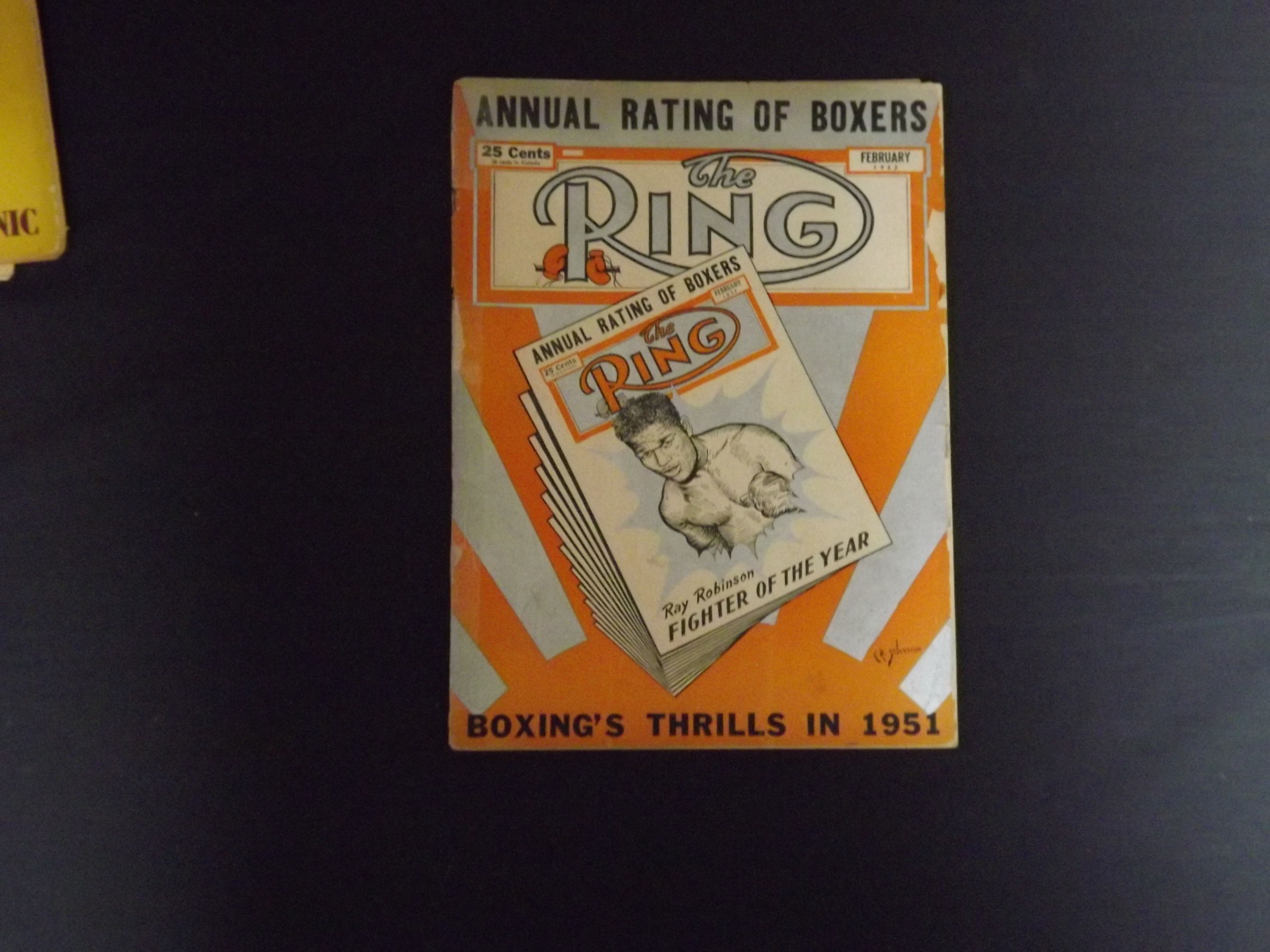 Magazine 4to, illustrated, 64 pp. Spine split, but partially repaired with archival tape, chips and tears to edges, normal aging; otherwise good. Early Robinson cover, with stories on Rocky Marciano, television and boxing and Joey Maxim.