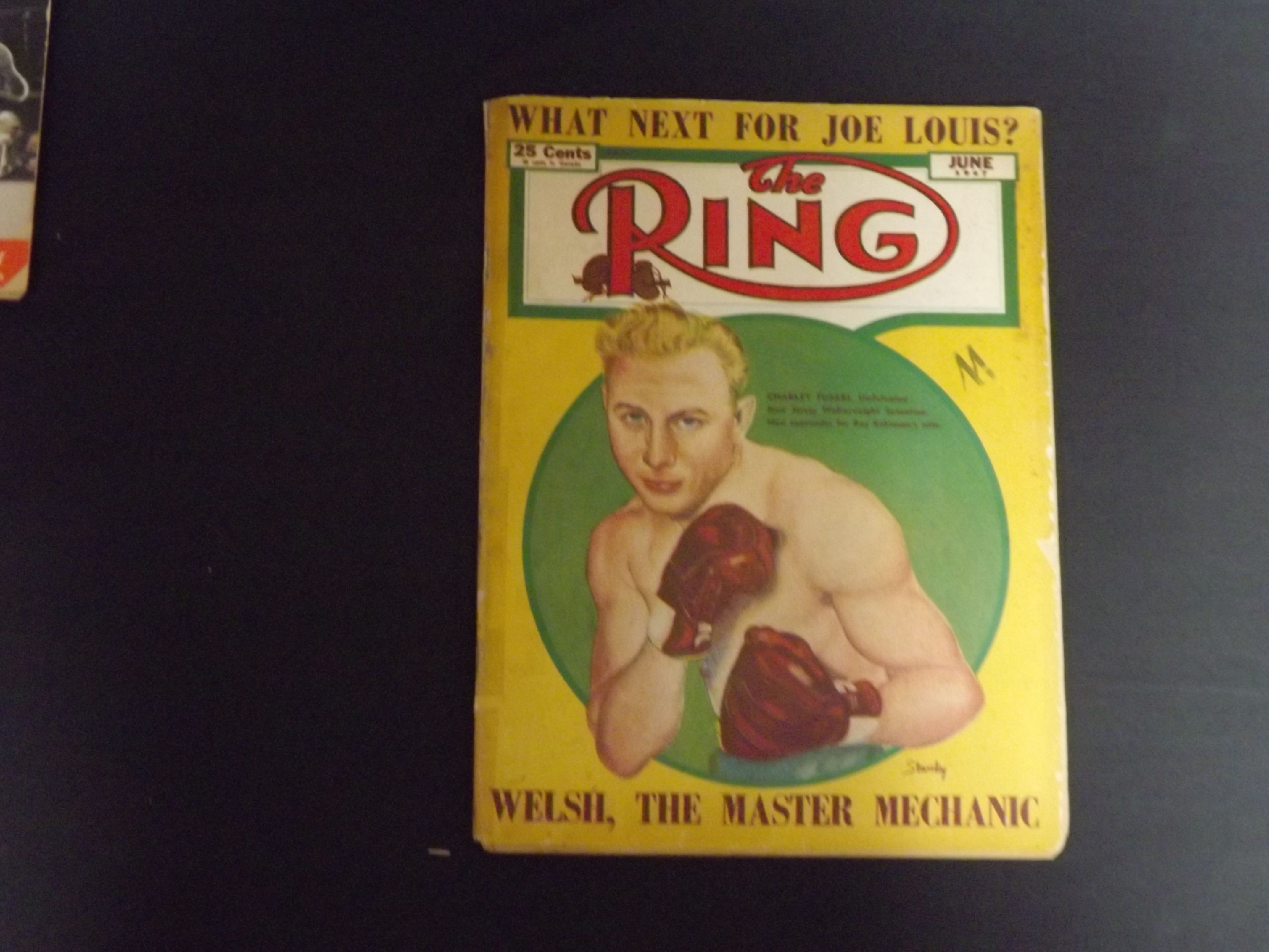 Magazine, 4to, illustrated, 64 pp. Crude tape repairs to spine, ink mark on cover, a couple of edge chips, normal aging; otherwise about good. This is the June 1947 issue with Charlie Fusari on the cover.Articles on Joe Louis, Charlie Fusari and Freddie Welsh.