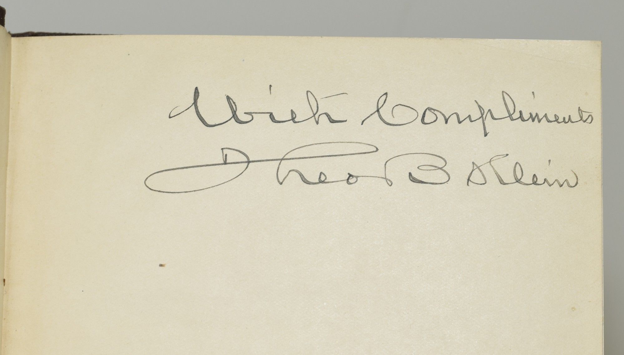 Pennsylvania: Wm. Stanley Ray, State Printer of Pennsylvania, 1905. First Edition. Hard Cover. Very Good binding. Signed. First Edition of Theodore Klein and Isaac Brown's EARLY HISTORY AND GROWTH OF CARLISLE. and EARLY FOOTPRINTS OF DEVELOPMENTS AND IMPROVEMENTS IN NORTHWESTERN PENNSYLVANIA. Signed by Klein on the front endpaper. With twenty eight maps and surveys, some colored or folding. Brown textured cloth, with gilt lettering. Very Good. Very Good binding.