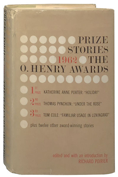 Garden City: Doubleday, 1962. First Edition. Hardcover. Very Good/Very Good. Edited and with an Introduction by Richard Poirier. Very Good in a Very Good jacket, clipped, generally rubbed and with some chips. Green buckram, lightly mottled, with red and black ink lettering on the spine. Square and firmly bound, stamped "SOLD" with black marker underneat on the front endpaper. In addition to Pynchon's "Under the Rose," collected here are stories by Katherine Anne Porter, Tom Cole, Shirley Ann Grau, Reynolds Price, John Updike, and others.