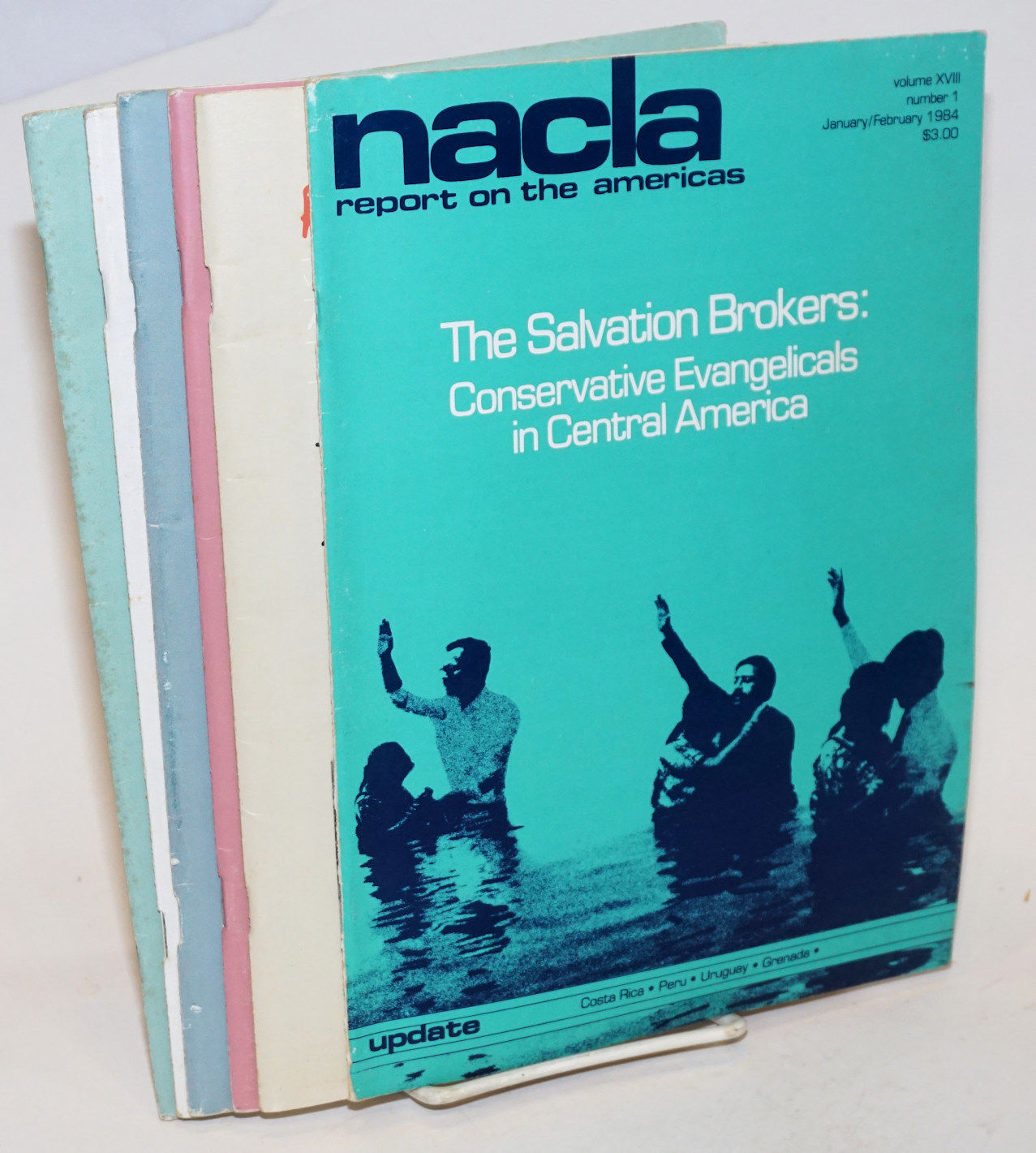 New York: North American Congress on Latin America, 1984. Magazine. various pagination, in glossy, stapled, illustrated wraps. A complete set of Volume eighteen, 6 numbers, bi-monthly. All have worn wraps and address label on rear wrap, Number 5 has some slight foxing, else generally very good condition. This volume includes "The Salvation Brokers: Conservative evangalists in Central America," by Enrique Dominguez and Deborah Huntington, Uruguay, US invasion of Grenada, "El Salvador 1984," "Endgame: a special report on US Military strategy in Central America," by Allan Nairn, Belize, US Sanctuary Movement, "Oil on Troubled Waters: Venezuelan Policy in the Caribbean," by Robert Matthews, "Are Democrats Different?" Puerto Rico and the Cerro Maravilla Deaths, also articles, footnotes, references, photos, illustrations, tables. The information source for the Left in Latin America. Vol. XVIII, Nos. 1- 6, January - December. The NACLA Newsletter, which became the Latin America & Empire Report in the early 1970s and the NACLA Report on the Americas in 1977, was the primary source for Left-wing reportage on events and institutions affecting the people of Latin America, occasionally expanding coverage to the Mid-East, Southeast Asia and,of course, the Empire. Each issue, published bi-monthly, is filled with lists, statistics, reading lists, tables, maps and other extremely useful information on the activities of the CIA, US and multinational corporations, banking institutions and military-police tactics throughout South and Central Americas, the islands and Mexico.