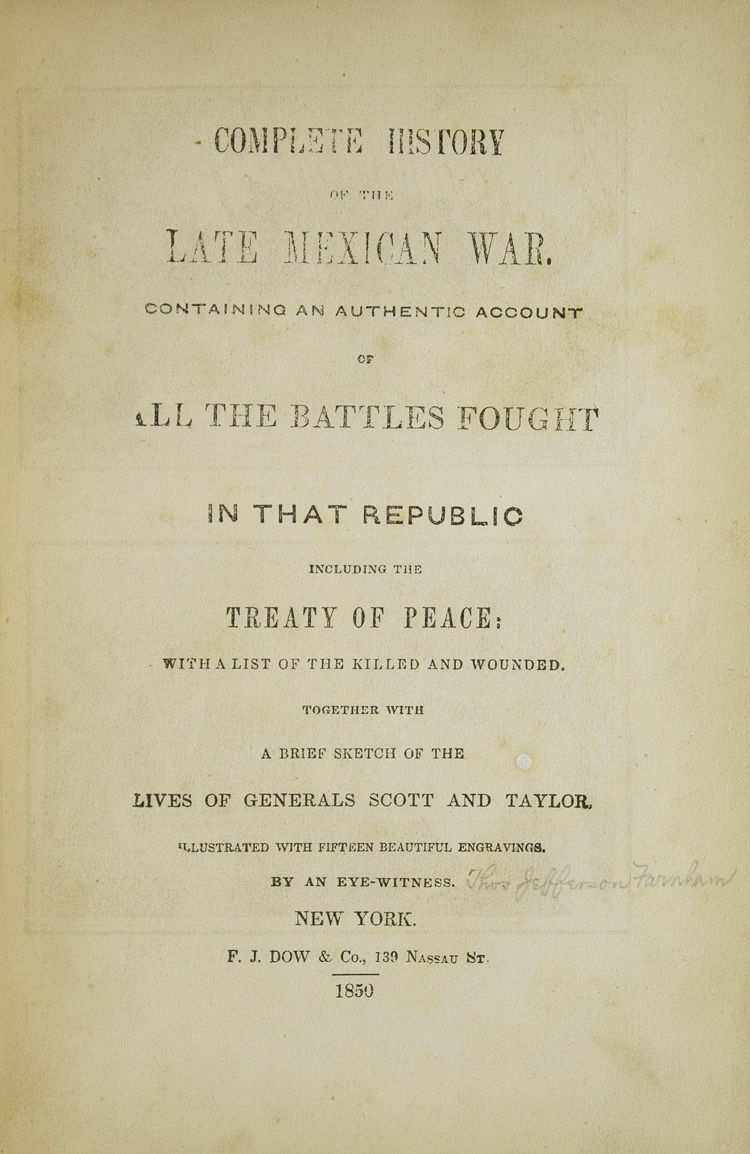 Complete History of the late Mexican War. Containing an Authentic Account of All the Battles Fought in that Republic ... By an Eyewitness (possibly Thomas Jefferson Farnham)