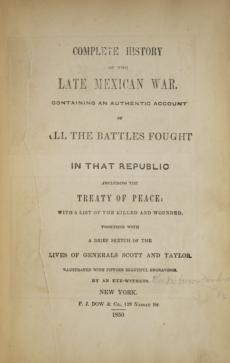 Complete History of the late Mexican War. Containing an Authentic Account of All the Battles Fought in that Republic ... By an Eyewitness (possibly Thomas Jefferson Farnham)