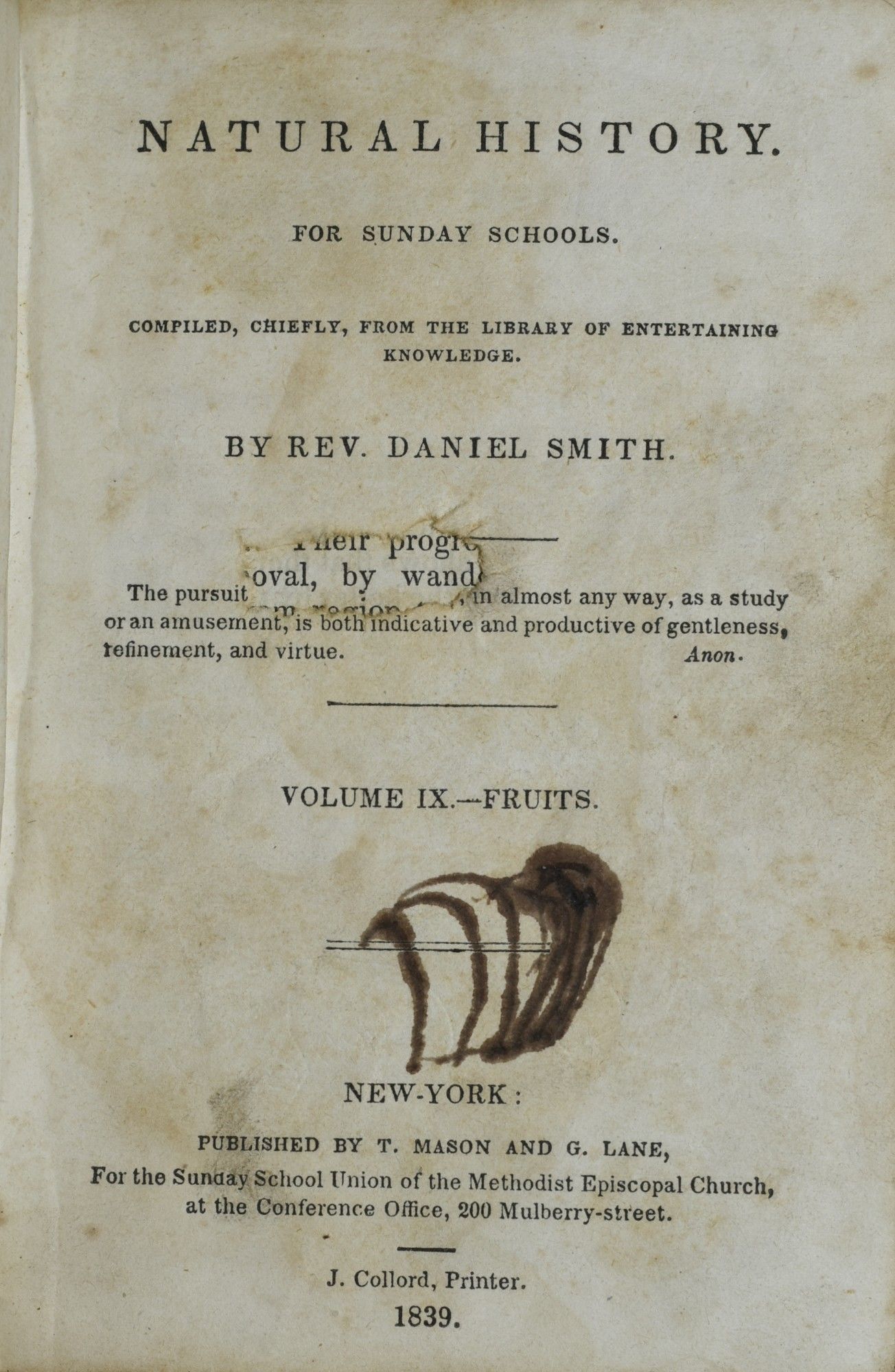 NATURAL HISTORY. FOR SUNDAY SCHOOLS. COMPILED, CHIEFLY, FROM THE LIBRARY OF ENTERTAINING KNOWLEDGE. VOLUME IX. FRUITS. (ONE VOLUME ONLY)
