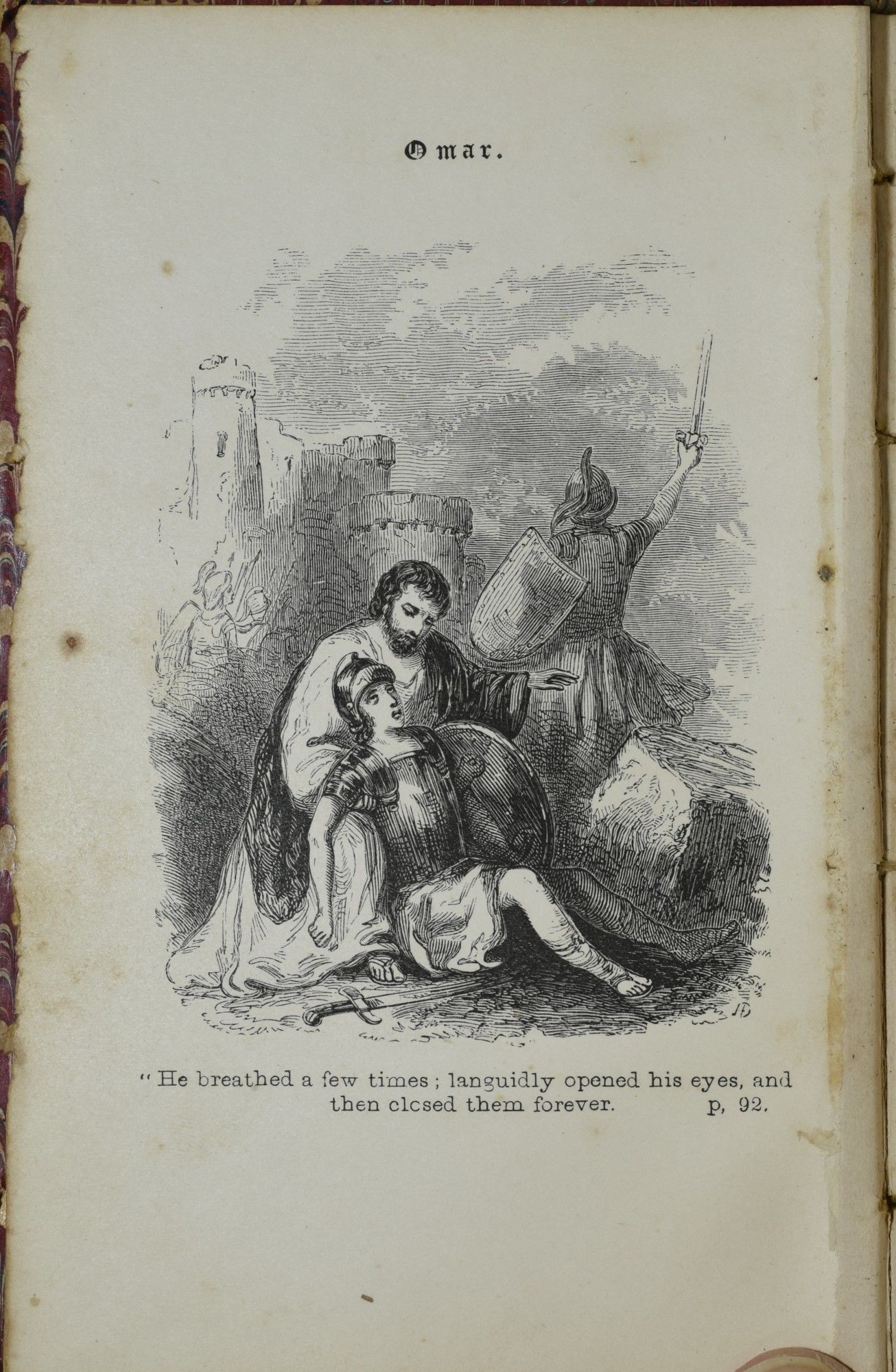 Philadelphia: American Sunday-School Union, 1835. Quarter Leather. Very Good binding. The American Sunday-School Union's edition of Omar: Designed to Illustrate the Jewish History from B.C. 63 to the Birth of Christ. Engraved frontispiece and additional in text illustrations. Sunday School name and number on the front pastedown, in ink. Scattered foxing. Quarter red leather, with gilt lettering, over marbled paper boards. Very Good. Very Good binding.