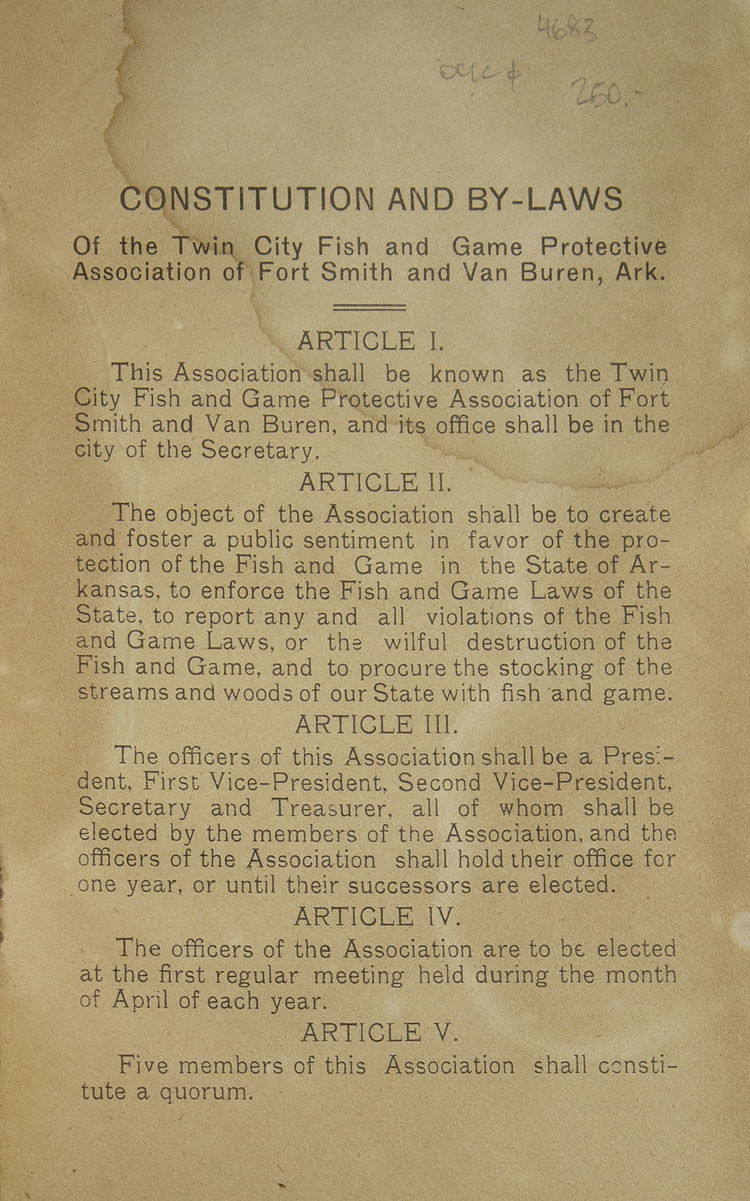 Constitution and By-Laws of the Twin City Fish and Game Protective Association of Fort Smith and Van Buren, Ark