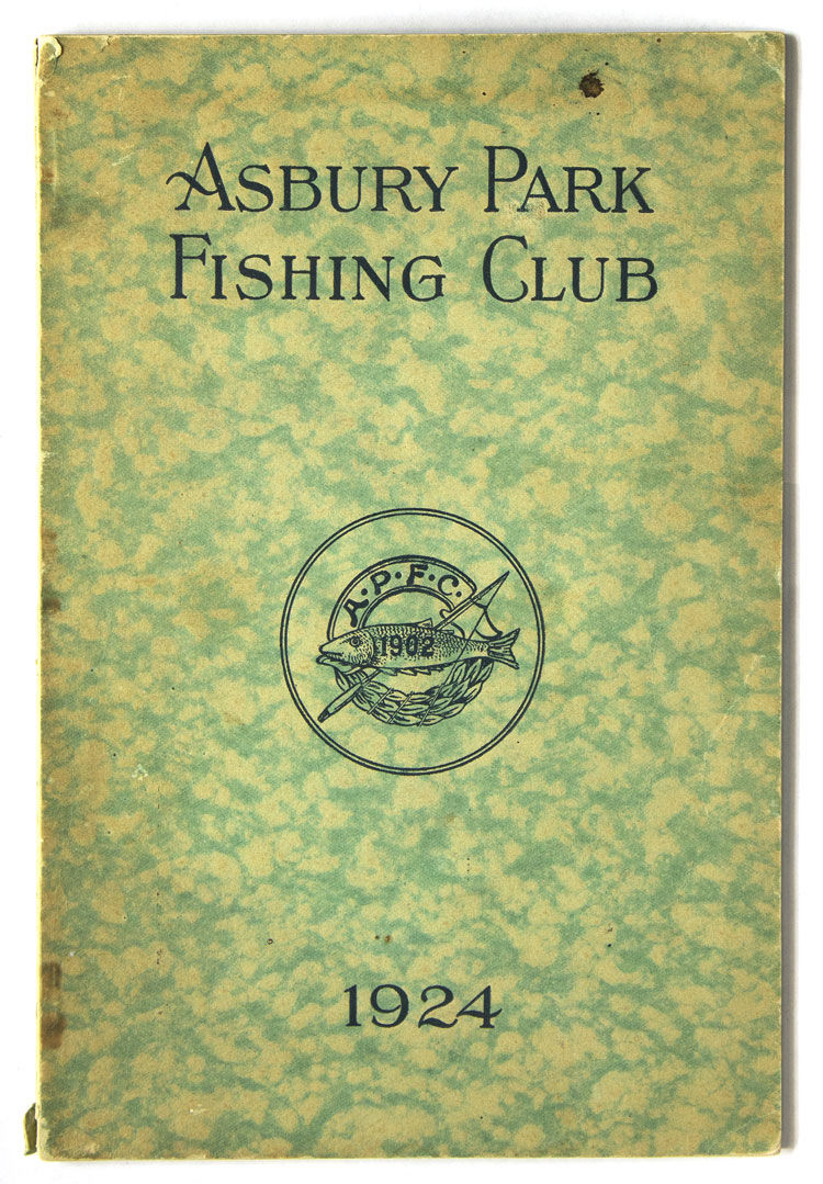 [Asbury Park, New Jersey], 1924. Illustrated from photographs and line drawings, plates, portraits, vignettes of various fish, spoecies map. 72 pp. 1 vols. 8vo. Stiff mottled green wrappers, printed on upper cover. Minor soiling and toning. Very good. Illustrated from photographs and line drawings, plates, portraits, vignettes of various fish, spoecies map. 72 pp. 1 vols. 8vo. Nicely produced club book, illustrated with portraits of members, photographs of fishing, line drawings, and a good group of articles. “New Record Tuna Catch” by Claude E. Holgate mentions Zane Grey. Van Campen Heilner (author of Salt Water Fishing, 1937) was president of the club in 1924, and was also likely the author of the unsigned article “The Duck Shooting Fisherman”. Among the ads is one for a new edition of The Call of the Surf. Not in Bruns or Heller; Not in OCLC