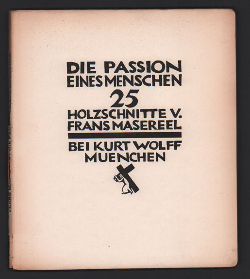 Munich: Kurt Wolff, 1928. Third edition. Very good. Square octavo [22.5 cm] White and black printed paper over boards. The extremities are a bit toned, and the paper backstrip is cracked. There is a previous owner's name, with the notation "New York City," in the top fore-edge corner of the front free endpaper. The rear free endpaper is partially cracked along the hinge. Masereel's series of 25 woodcuts titled "The Passion of a Man.