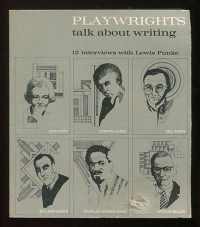 Chicago/Westport: The Dramatic Publishing Company. Very Good+. (c.1975). First Edition. Softcover. [minor edgewear to covers, and an unfortunately unremovable scuff mark on the front cover]. Trade PB (pen-and-ink portraits) "Twelve innovative and especially successful playwrights discuss their writing, work habits, training, and attitudes with Lewis Funke, for many years Drama Editor of the New York Times." The subjects are: Jean Kerr, Edward Albee, Neil Simon, William Gibson, Douglas Turner Ward, Arthur Miller, Robert Anderson, Howard Sackler, Tom Stoppard, John Osborne, Lillian Hellman, and Brian Friel. Each interview is prefaced by a one-page biography of the subject, a description of the setting for the interview, and a full-page pen-and-ink portrait of the playwright. (These portraits are by an uncredited illustrator, and the publishers added a little insult to that injury by reproducing each of them in miniature on the book's covers.) .