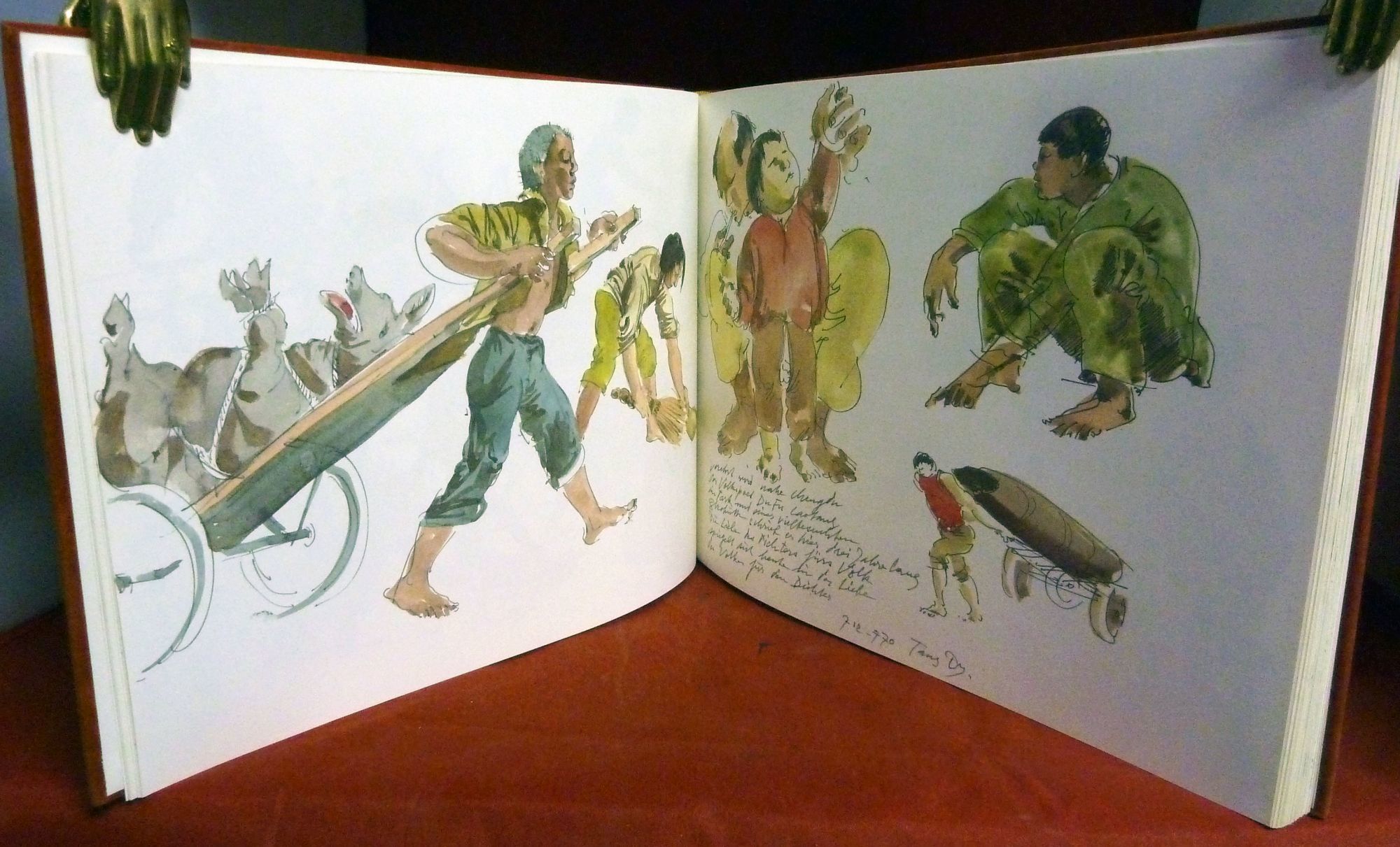 Genf: Promedi, SA, 1986. First edition. Hardcover. Orig. red/brown velvet, front cover decorated in blind. Fine. Erni, Hans. Unpaginated. 24 x 32 cm. Limited edition Luxe, copy 46 of 145 (total edition of 165) signed by Erni. Text in German. Erni steps into the Middle Kingdom of China presenting color and black and white drawings. Plus an original pencil drawing by Erni inscribed and signed on the title page. The latter reflects his image on the front cover.