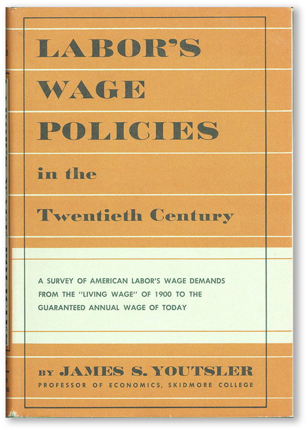 [New York]: Twayne Publishers / Skidmore College, [1956]. First Edition. Octavo (22cm.); publisher's cloth in green and orange decorative dust jacket; 344pp.; illus. Light wear to jacket extremities, else Near Fine. "A survey of American labor's wage demands from the 'living wage' of 1900 to the guaranteed annual wage of today" - upper jacket cover.