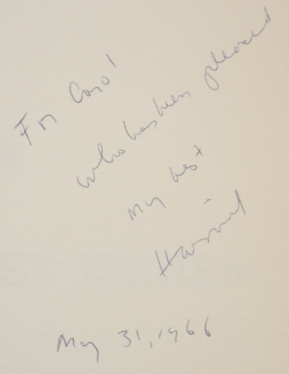 New York: Folder Editions, 1966. First edition. Softcover. 57 pages. A collection of poems by Zinnes accompanied by drawings by Margit Bec, Nell, Blaine, Elias Friedensohn, Robert Rauschenberg, Hyde Solomon, and Theodore Stamos. An about very good copy in wrappers with some light creasing to the corners and some other minor wear and with laid in errata slip. Signed and inscribed by Zinnes.