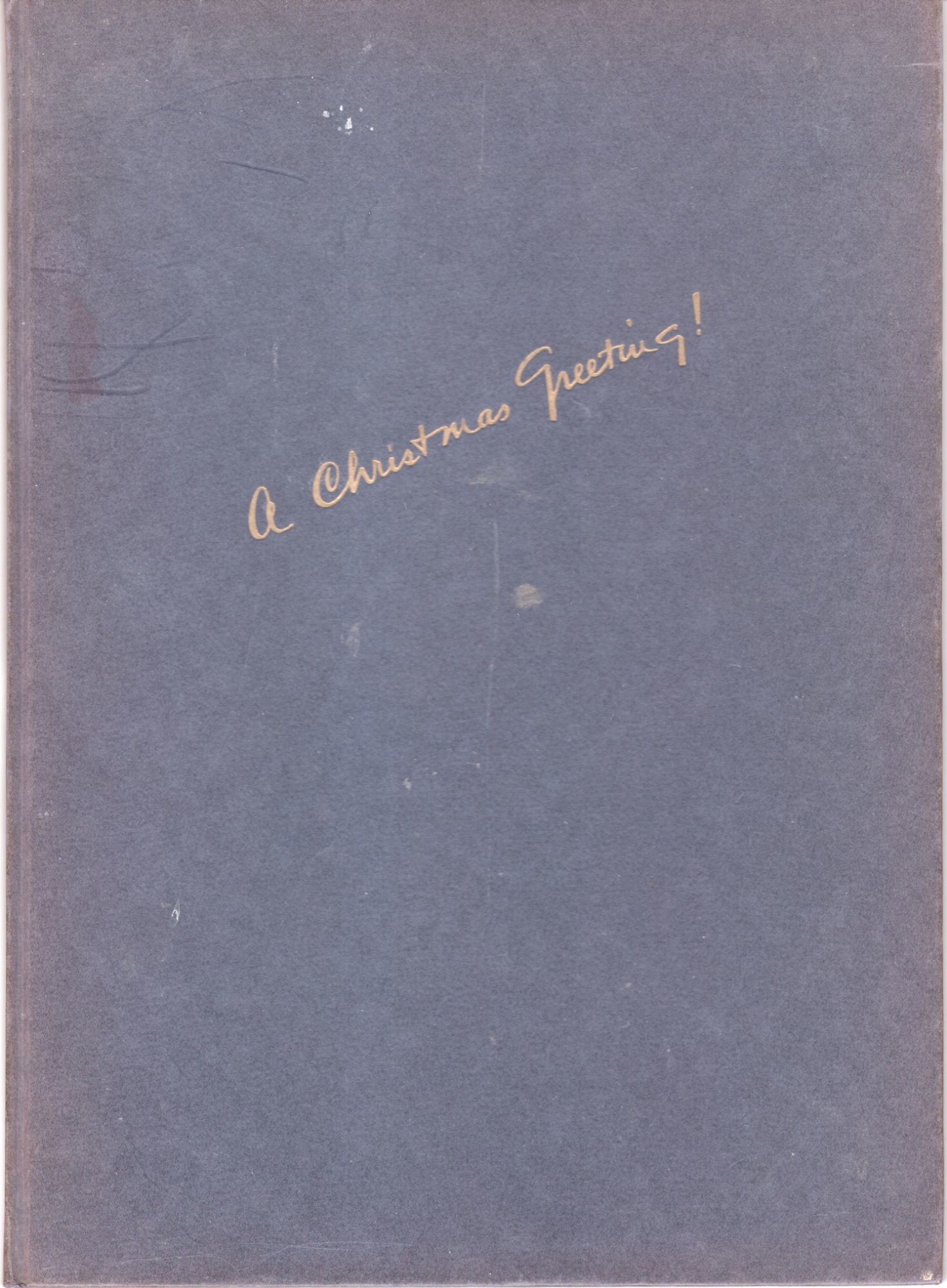 William E. Rudge's Sons, 1937. Hardcover. Very Good. Hardcover. Limited to 400 copies. Once a renowned horse farm, this property located in Washington, CT is now a boarding school. Navy blue paper covered boards with gilt title "A Christmas Greeting!" to front cover. Minor wear and soiling to covers. Slight browning to spine and edges of boards. Occasional smudge marks to margins, but clean overall. A tall thin octavo printed in Baskerville Type on Archer Paper. Includes one page of text and 18 pages of captioned photographic illustrations of horses and the farm. Unpaginated [about 24 pages.] EQU/021919.