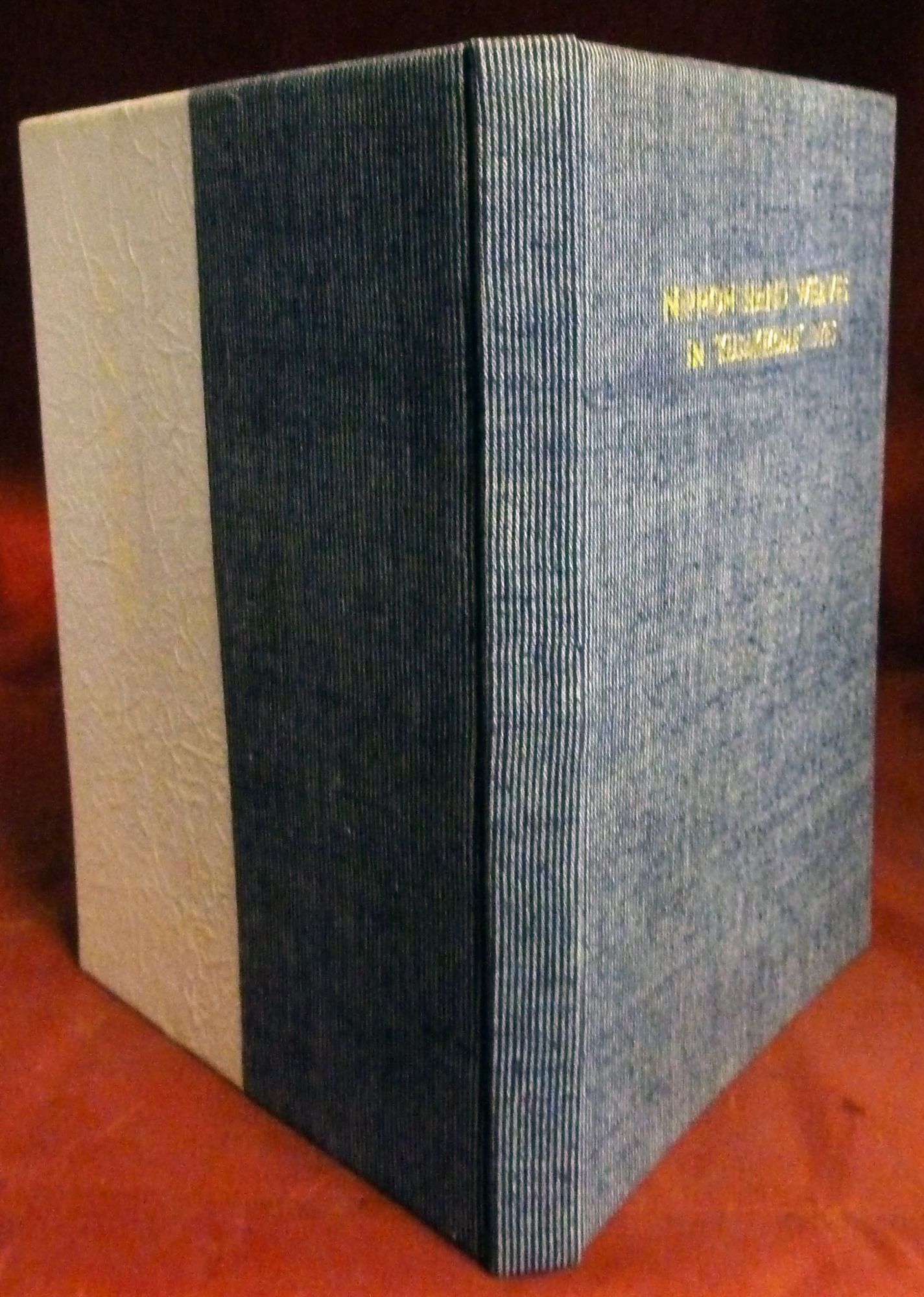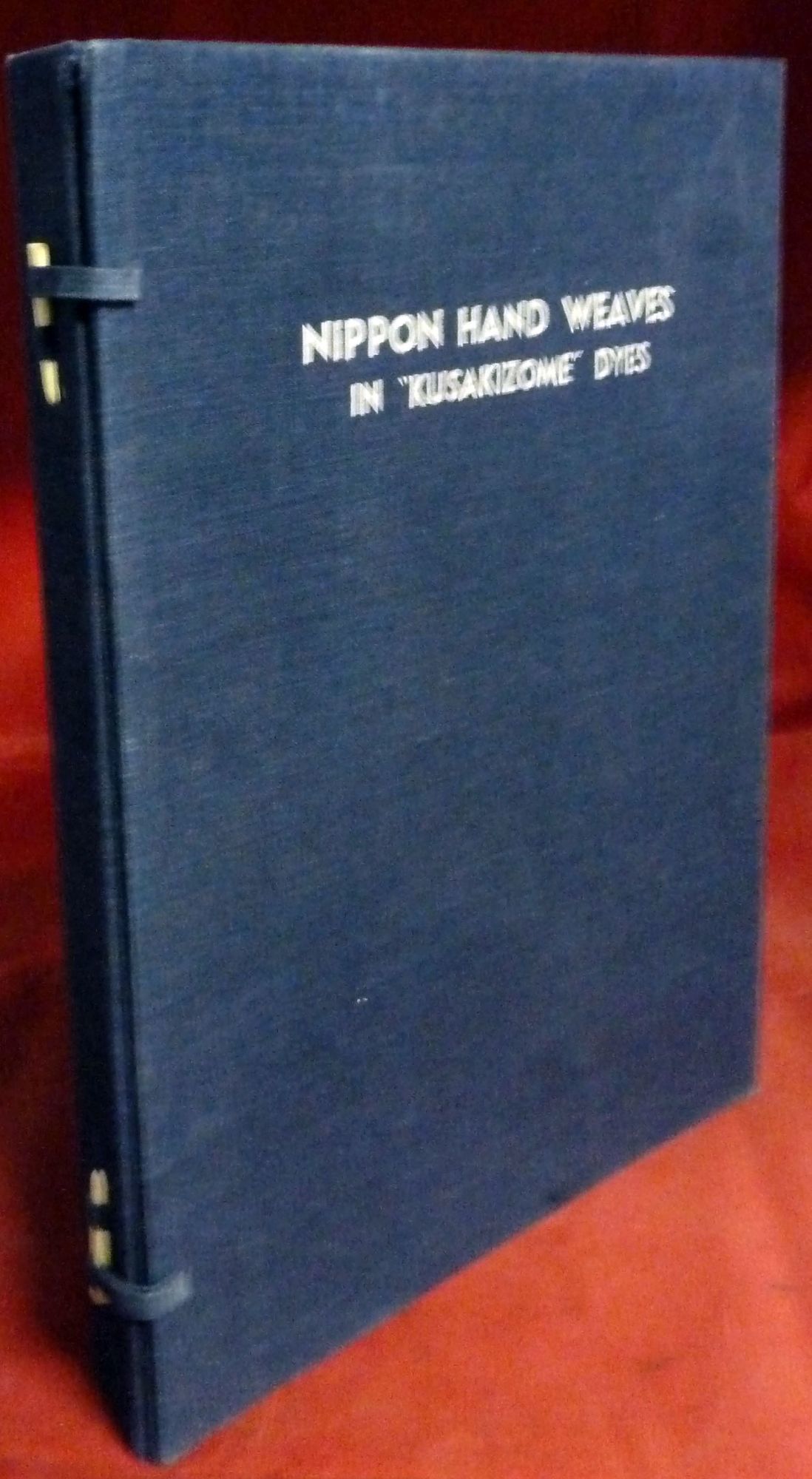 Kanawanga: Getumeikai, 1959. First edition. Hardcover. Orig. publisher's binding of gilt lettered Mansuji pattern cotton cloth with back cover, half as previously noted with fore-edge portion in white hand-made fabric. Fine in fine folding box of silver lettered indigo Muji patterned cotton cloth with Japanese style ties. 59 (3) pages. 28.5 x 20.5 cm. Limited edition, copy 186 of 200. Twenty-six natural plant-dyed fabric samples will full descriptions and numerous small wood cut illustrations of plant dye sources by Seiji Yamazaki, Text in English and Japanese, wood block illustration of a hand loom by Unichi Hiratuka --a type of hand loom ("Ground-loom" ji-bata or "Cripple-loom" Izaru-bata). Almost as new copy.