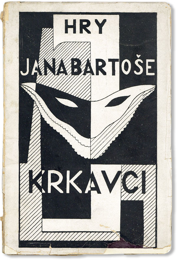 [Praha: Vydal Devetsil, 1924]. Second Edition. Slim octavo (22cm.); publisher's white pictorial wrappers, yapp edges; 61pp. Wrappers rather chipped and worn, especially along spine, repaired shallow loss at bottom edge of upper cover, general dust-soil, some foxing to rear cover, textblock slightly toned, else Good to Very Good. Earliest edition of the author's first play to be issued by the leading Czech avant-garde publishing house Devetsil, upper cover designed by the prolific Surrealist artist Jindrich Štyrsky. OCLC locates one copy in the United States as of November, 2018, at the NYPL.