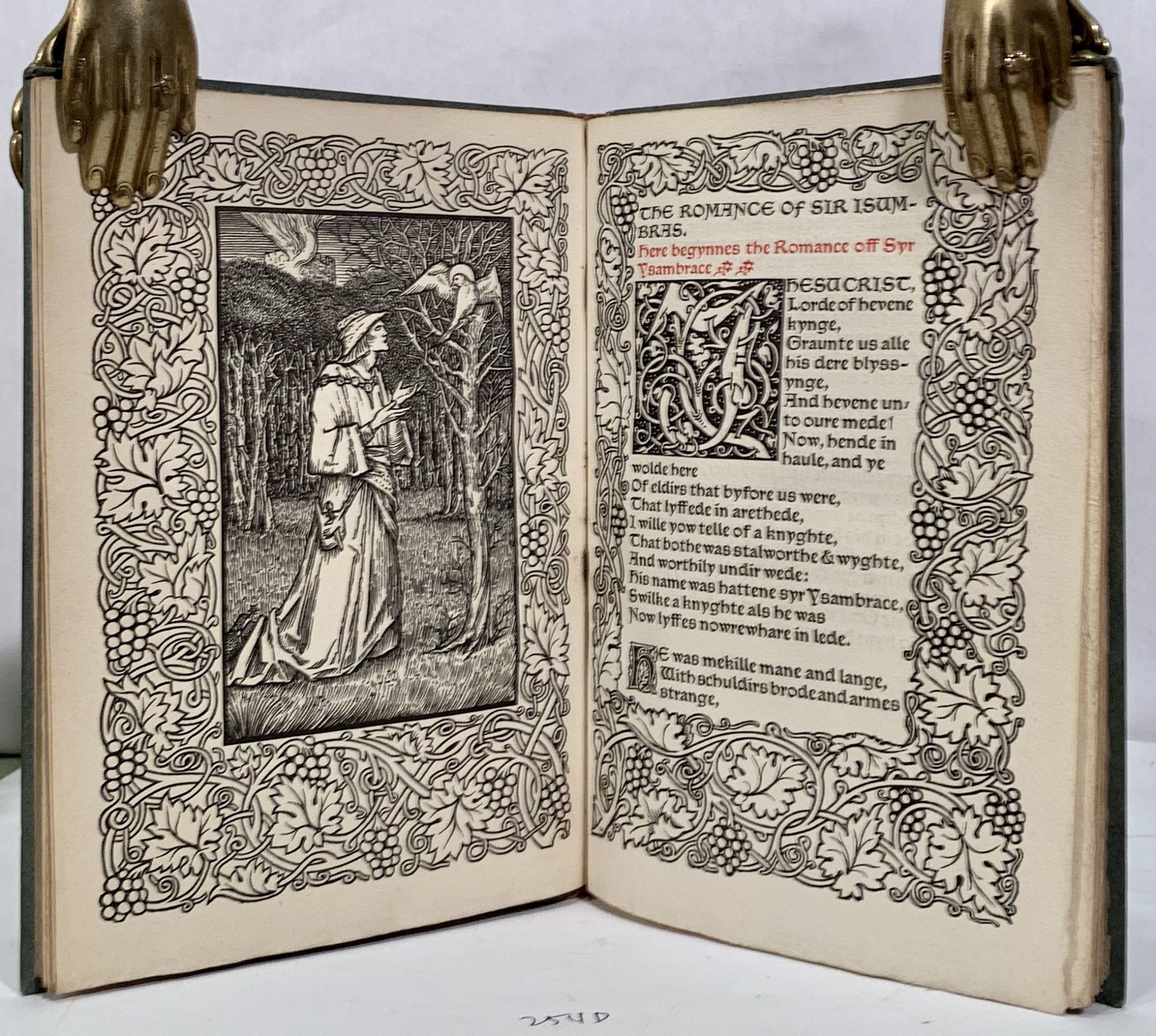 Upper Mall, Hammersmith: Kelmscott Press, 1897. Hardcover. Orig. gray boards and beige cloth spine. Fine. Burne-Jones, Edward. 41 pages. 21 x 14.5 cm. Frontispiece, a woodcut designed by Sir Edward Burne-Jones. Uniform with Sire Degravaunt, from the same source: an ancient metrical romance, reprinted from the Thornton MS, in the library of Lincoln Cathedral is printed in Chaucer type, in black and red. The third in series from the "Thornton Romances." Edited by F.S. Ellis after the edition printed by J.O. Halliwell. Limited edition, one of 350. PETERSON A48. SCOTT p.110.