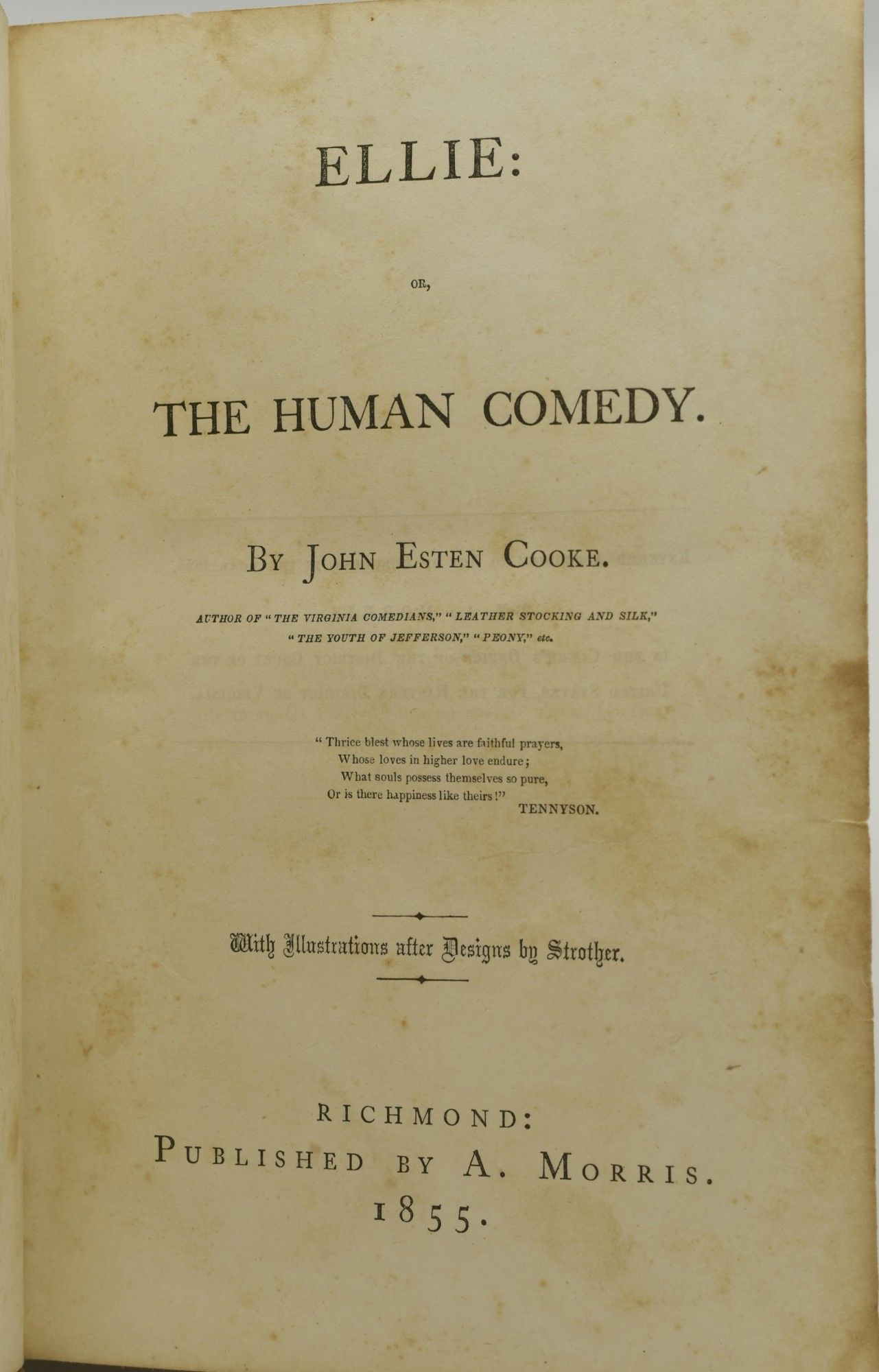 Richmond: A. Morris, Publisher, 1855. First Edition. Hard Cover. Good binding/hardcover. A sturdy if somewhat cocked copy of the First Edition of this early novel by novelist (and sthardcoveraff officer of Jeb Stuart) John Esten Cooke. This copy with the signature of Benj. F. Sheetze of Leesburg, Va where he was publisher of the local newspaper, The Leesburg Mirror. With wear to the bottom of the spine. (Wright II, 611). Good binding / hardcover.