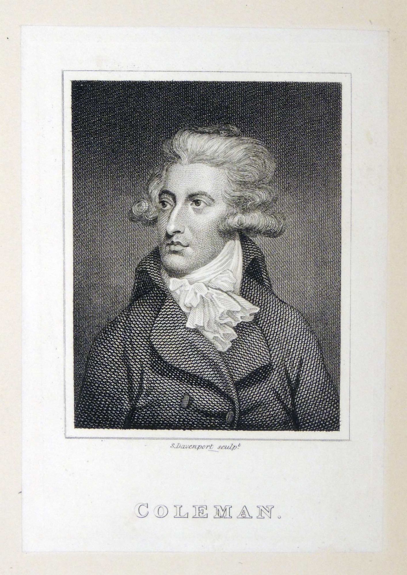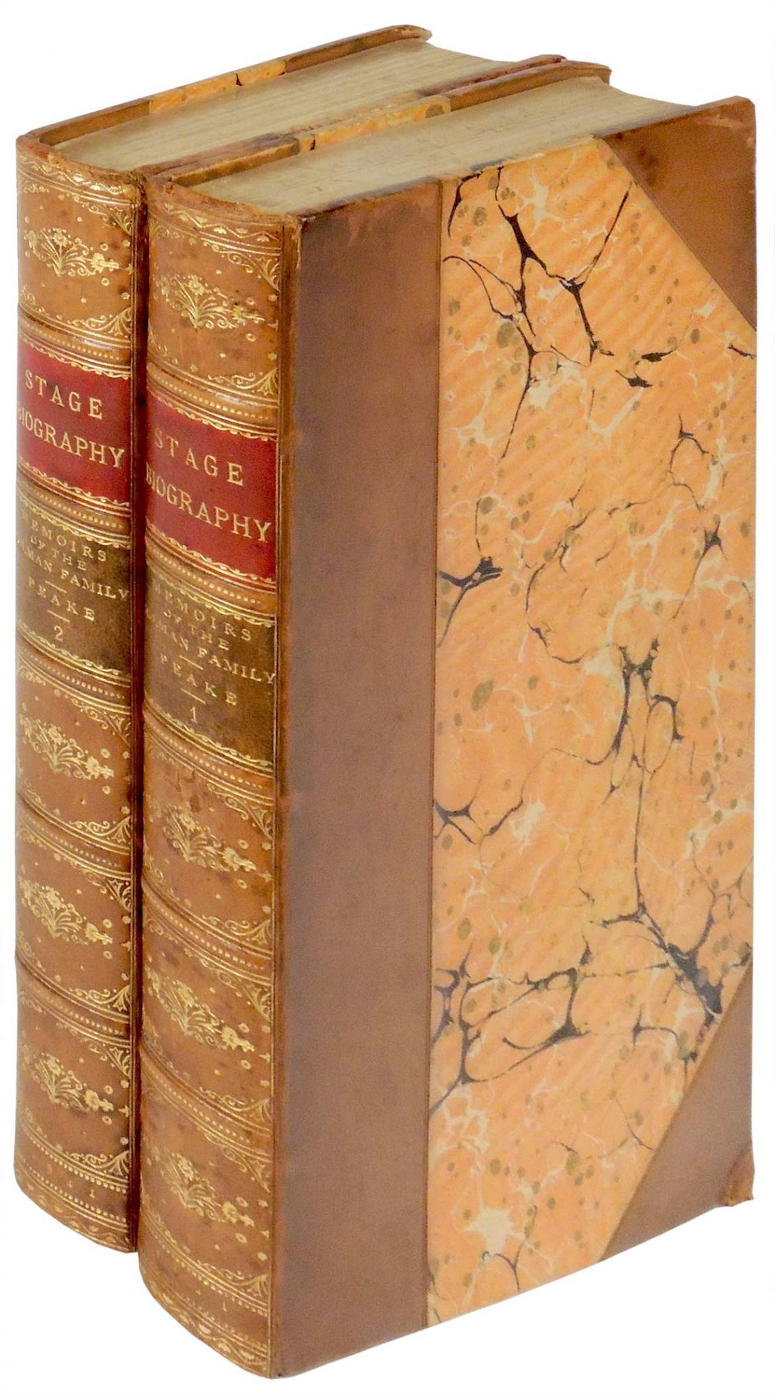 London: Richard Bentley, 1841. Hardcover. Very Good. Hardcover. Theater owner and playwright, Augustin Daly's copy, auction number 2610. First Edition. Includes two frontispiece portraits and two additional inserted portraits. These volumes detail the lives of George Colman the Elder (1734 - 1794) and George Colman the Younger (1762 - 1836). Both were playwrights and owners of the Haymarket Theatre in London. Bound in three quarter tan leather over marbled paper covered boards with red label "Stage Biography" and green title / author label beneath. This is part of a series of books Daly had bound in a matching style, all labeled "Stage Biography." Rubbing, pulling, and wear to leather. Foxing to first and last few pages including frontispieces. Occasional spots of foxing to margins, but clean overall. Top edge gilt with marbled endpapers. Bound by R.W. Smith. Auction record tipped into rear of first volume. Volume I: 432 pages; Volume II: 454 pages. DRA/031419.