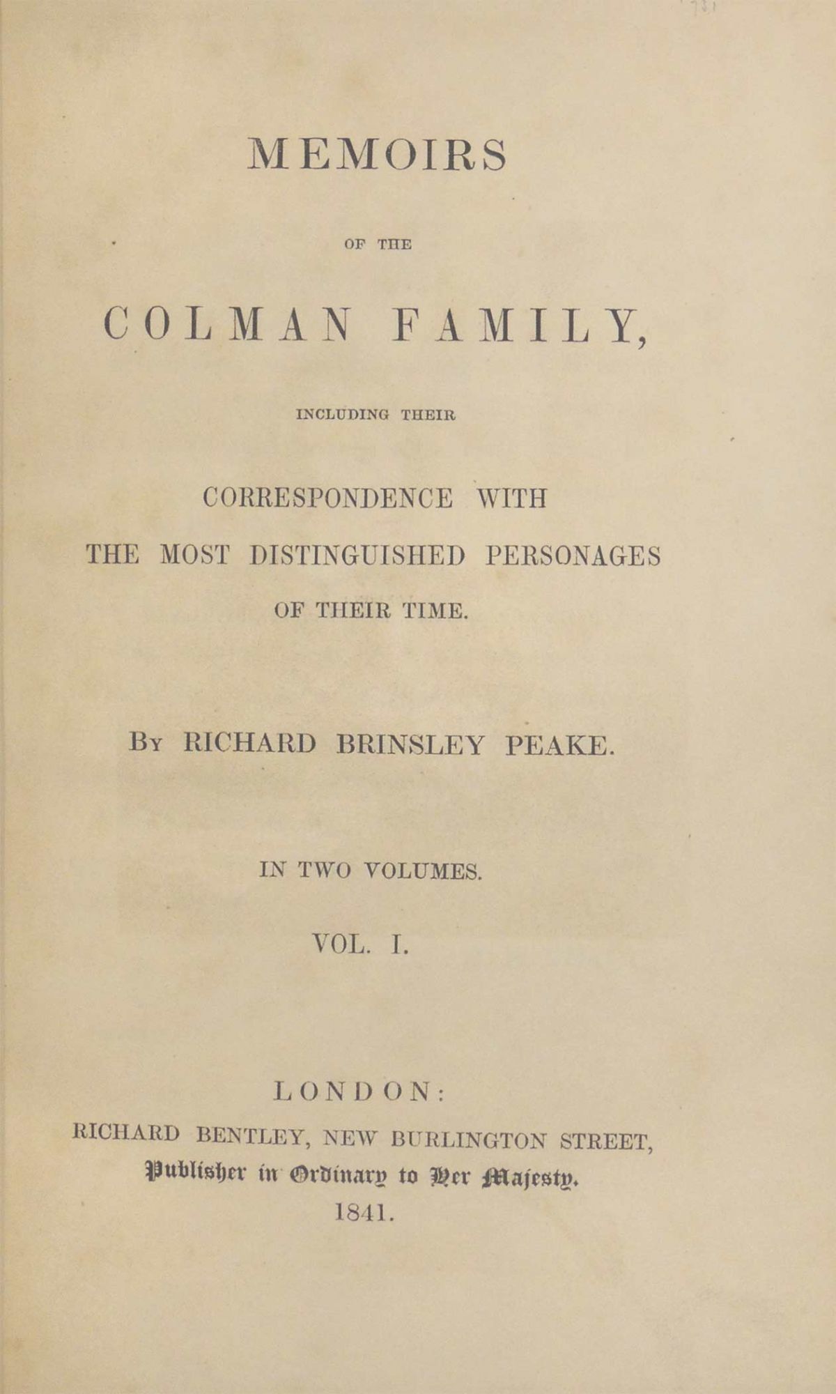 Memoirs of the Colman Family, Including Their Correspondence with the Most Distinguished Personages of Their Time. Two Volumes
