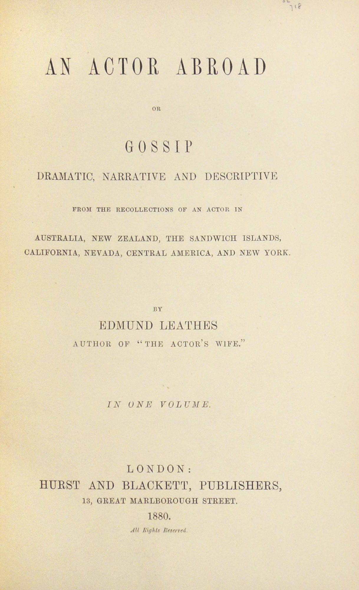 An Actor Abroad or Gossip Dramatic, Narrative, and Descriptive from the Recollections of an Actor in Australia, New Zealand, the Sandwich Islands, California, Nevada, Central America, and New York