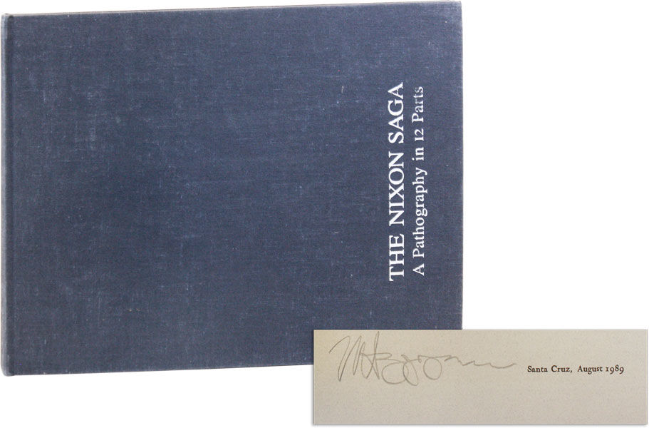 Santa Cruz: Press of Time, 1989. First Edition. Oblong Quarto (24cm x 31.5cm). Dark blue cloth boards (hardcover); [30pp]; illus. Near Fine copy; slight shelf wear to corner tips, else clean and tight. An imaginative and critical re-examination of Richard Nixon's biography. Text and illustrations by Mark Zepezauer. Number 143 of 400 copies. Signed by the author.