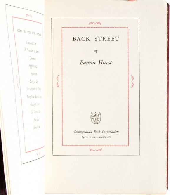 A prolific novelist and short story writer, Hurst's work was highly popular in the years after World War I. "Back Street is one of her two best remembered novels. The story of a woman who devoted her life to being the mistress of a married man, it was twice adapted into film, first in 1941 and then again in 1961" (St. Claire-Jackson). Ideas about the social expectations placed on women in a modern world -- and how women's race and religion affected their social standing -- shaped all of Hurst's works. "She wrote of immigrants and shop girls, love, drama, and trauma" (Kroeger).