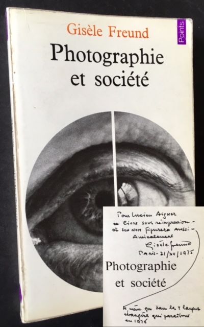 Editions du Seuil, 1974. Original wraps. Near Fine. WARMLY INSCRIBED BY GISELE FREUND TO THE RENOWNED HUNGARIAN PHOTOJOURNALIST LUCIEN AIGNER on the half-title. A very sharp copy to boot of the 1974 1st edition. Tight and Near Fine in its pictorial wrappers. Pocketsized (12mo), crisp black-and-white reproductions thruout.