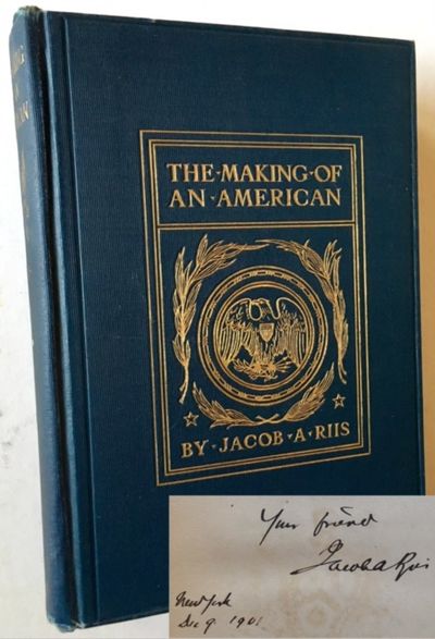 New York: The Macmillan Company, 1901. Decorative Cloth. Near Fine. A handsome copy of the 1901 1st edition of essentially Jacob Riis's autobiography. Tight and VG+ to Near Fine in its navy-blue cloth, with bright gilt-insignia and titling along the front panel and lightly-faded titling and insignia at the spine. Light foxing as well at the frontispiece (and its tissue-guard), light offsetting to the dedication page. Armorial bookplate (Anne C. Ewing) at the front pastedown OF THE WOMAN TO WHOSE HUSBAND RIIS TWICE INSCRIBED THIS COPY AND WROTE HIS 1 PG. ALS. This copy furthermore includes 2 tiny corrections in Riis's hand (one at pg. 283, one at pg. 436). Thick octavo, 443 pgs. plus publisher's ads.