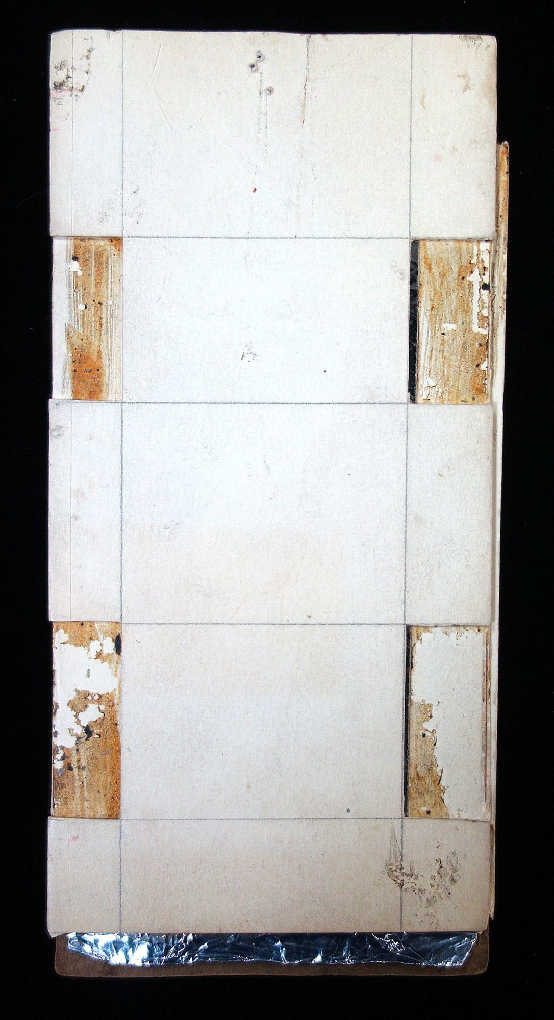 c1940s. Overall good condition. This proto-type fireworks packet for children is in celebration of the Fourth of July. It features a child outside on some grass holding a firecracker container with five small bursts above him in the sky, and "July 4th" written next to it. The handcrafted card is done on black paper with the details in white, behind the paper has been painted various colors and is backed by foil, which would result in the color coming through when the light catches the card correctly. Measures 7 1/2" x 3 1/2