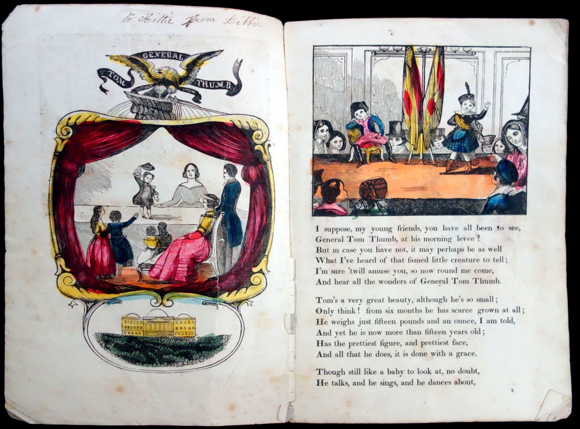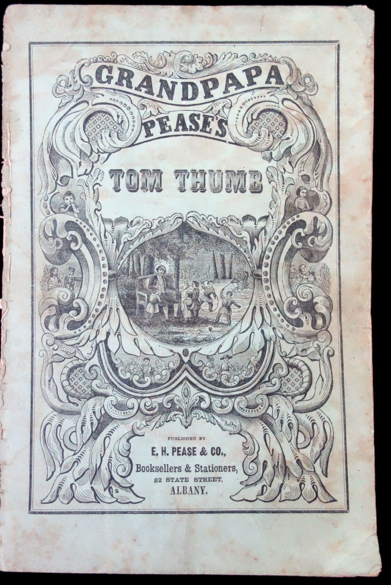 Albany, NY: E. H. Pease & Co. Aged toning, sewing repair on spine. First and last pages delaminated from covers. All intact Pencil markings on front and back covers. 8 leaves, green paper wrapper with small illustration of children playing in a park surrounded by large decorative elements. Hand colored illustrations throughout. half-page illustrations and two full-page illustrations. Back cover has a list of "Popular Games and Toy Books for Young People" also published by E. H. Pease & Co.