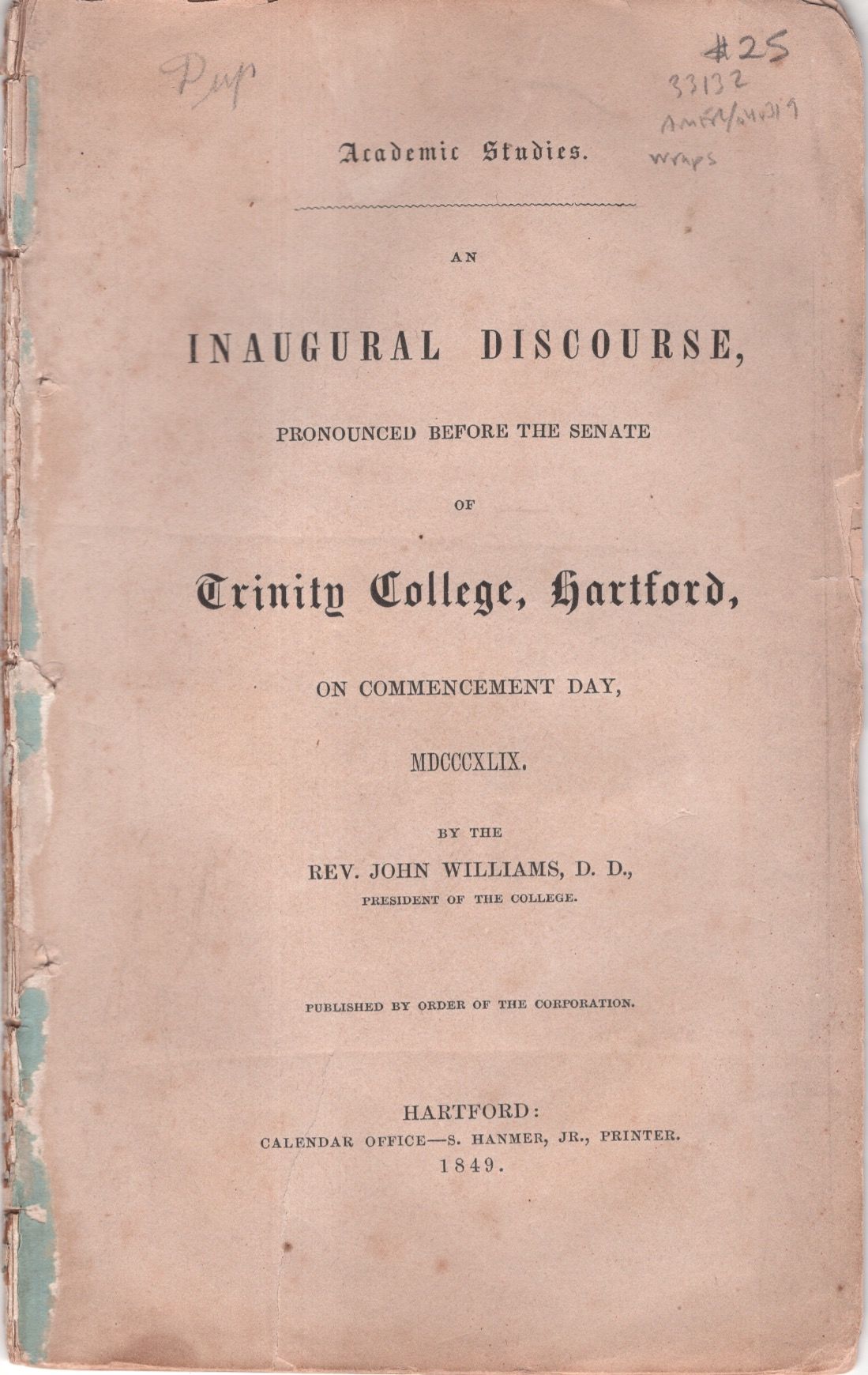 An Inaugural Discourse, Pronounced Before the Senate of Trinity College, Hartford, on Commencement Day, MDCCCXLIX by the Rev. John Williams, D.D., President of the College
