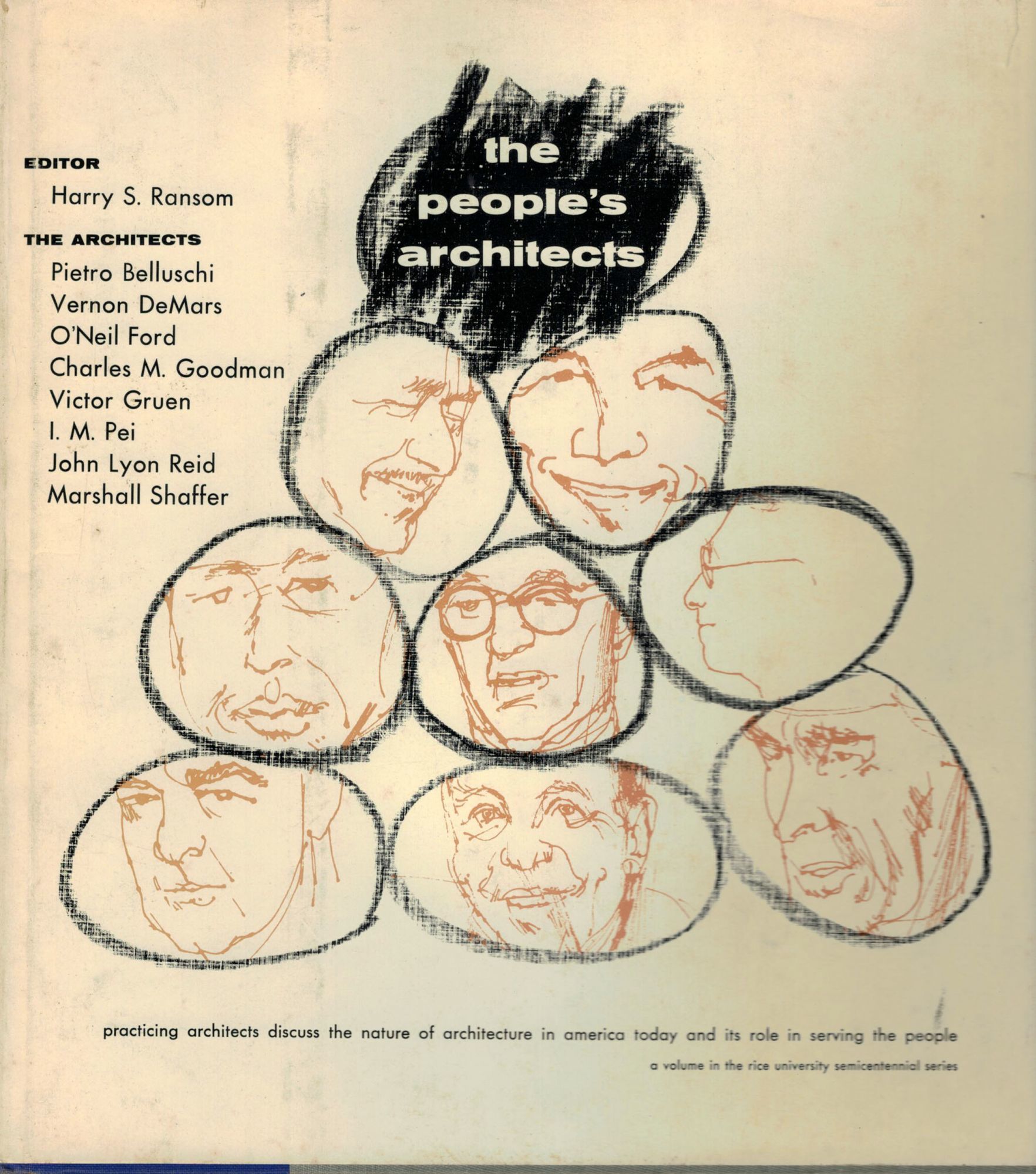 Chicago: Univ. of Chicago Press, 1964. First edition. Hardcover. Orig. two-toned cloth. Very good in very good dust wrapper. 120 pages. Abundantly illustrated in black and white. Published for Rice University with articles by I.M. Pei, Pietro Belluschi, Vernon DeMars, Charles M. Goodman et al: a total of eigh tessays. Stamp on front free endpaper.