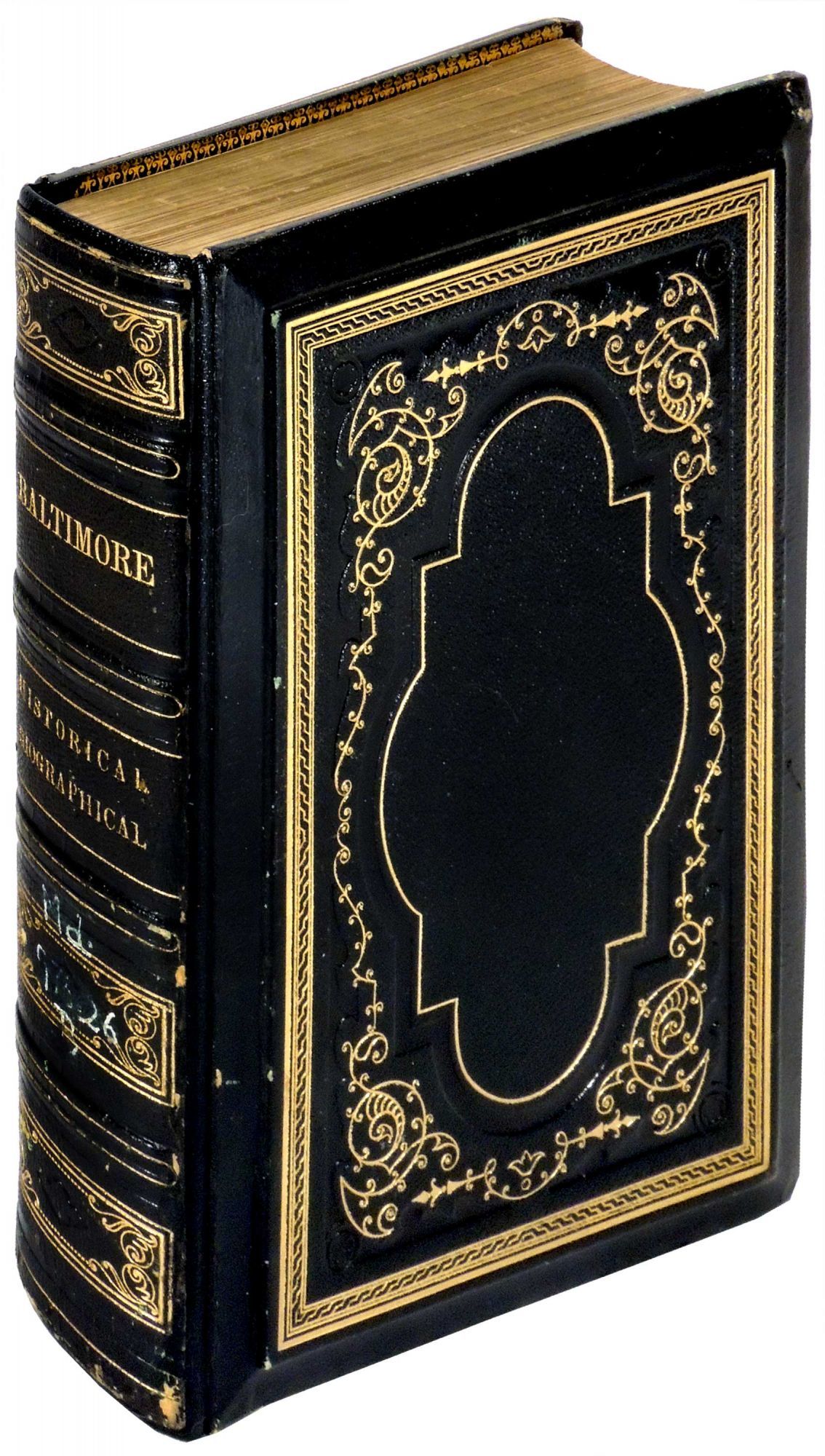 Baltimore: Richardson and Bennett, 1871. Hardcover. Very Good. Hardcover. SCARCE. A very attractive volume, despite being ex-library. Illustrated by Handann Brothers. Includes a history of the city by Brantz Mayer and over seventy biographical descriptions of notable Baltimorean men, each illustrated with an original photograph. Black full leather boards with gilt title, decoration, and raised bands to spine. Boards are beveled with gilt borders and decoration. This book has been expertly rebacked with the original spine mounted on the new leather spine. White library call number to spine, partially removed. Library stamp to bottom of title page and last page of text with call numbers to copyright page. Minor bumping to corners and minor wear to edges of boards. Gilt dentelles, full gilt edges, and later marbled endpages. Later silk headbands. Interior is very clean overall, though there are a few spots of foxing to several pages. Archival repairs to gutters of a few pages. Old pencil inscription erased from front endpaper, dated 1871. Illustrations include original tissue guards. Tight binding. 562 pages. BALT/041619.