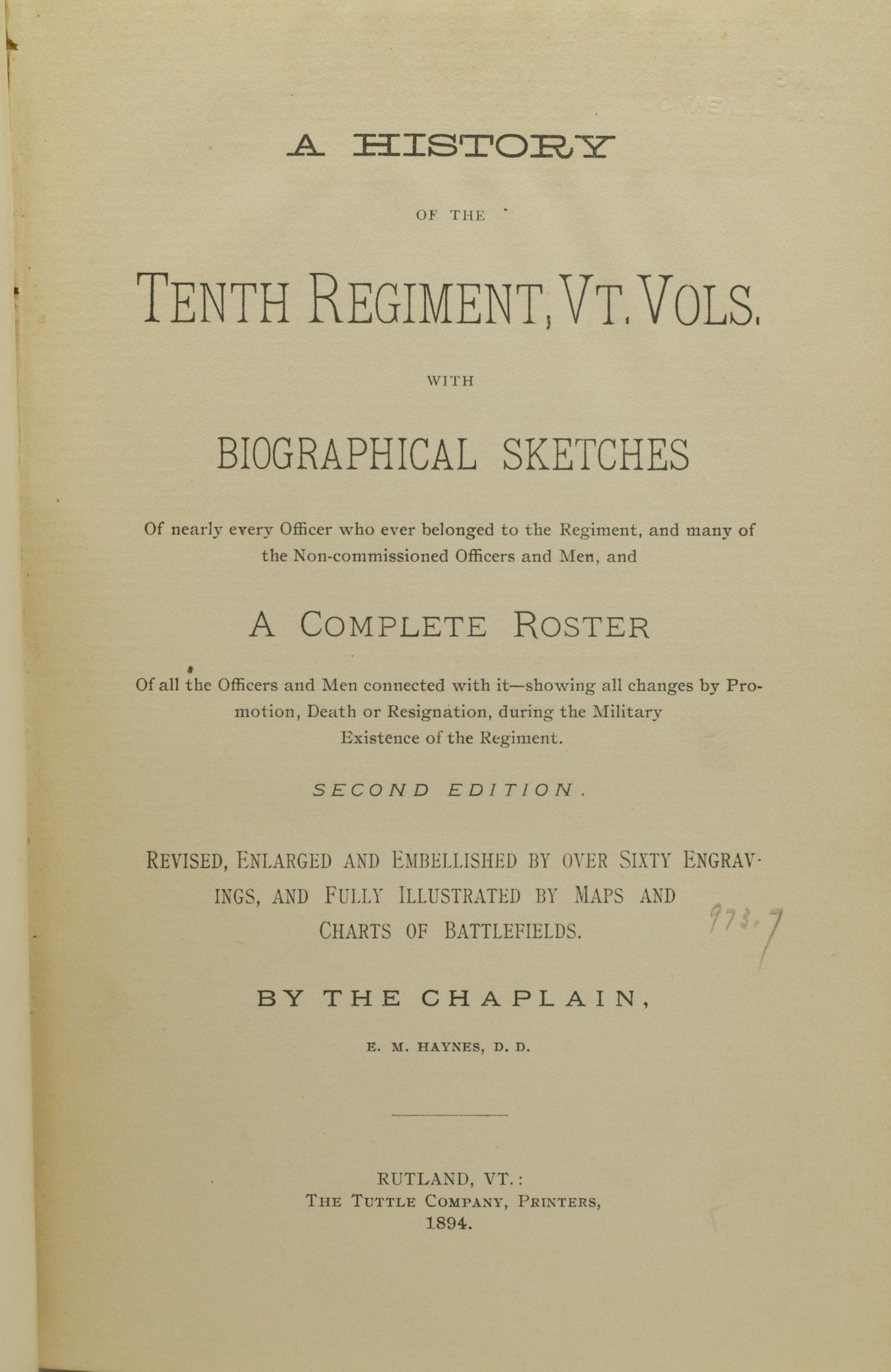 A HISTORY OF THE TENTH REGIMENT, VT. VOLS., WITH BIOGRAPHICAL SKETCHES